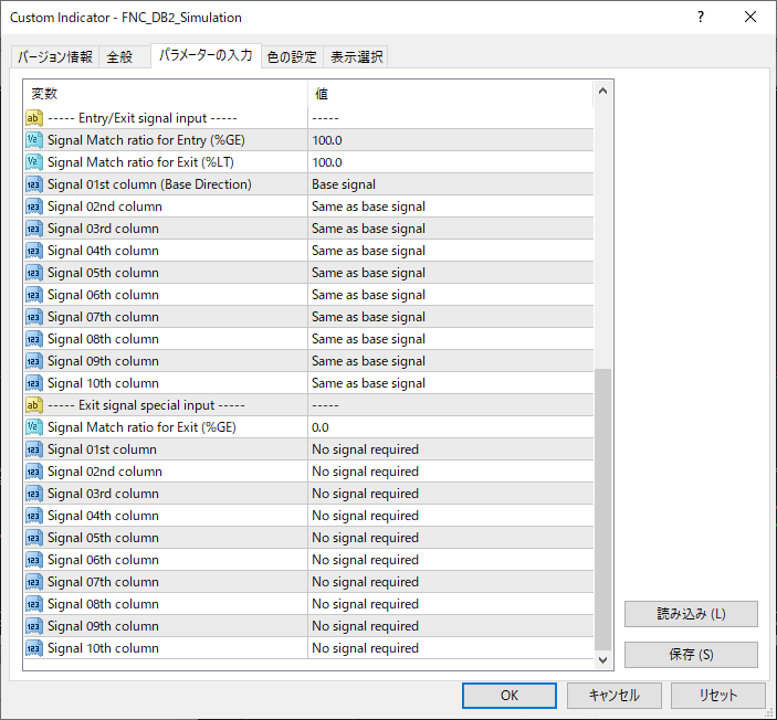 Need to create a preset of parameter settings from the "FNC_" indicator.