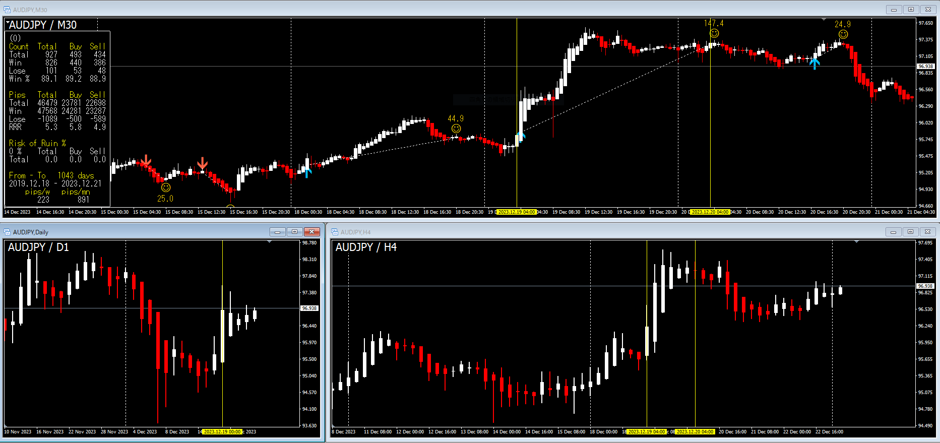 If the entry/exit timing is using more than a 4-hour time frame, the same result will not be achieved.
