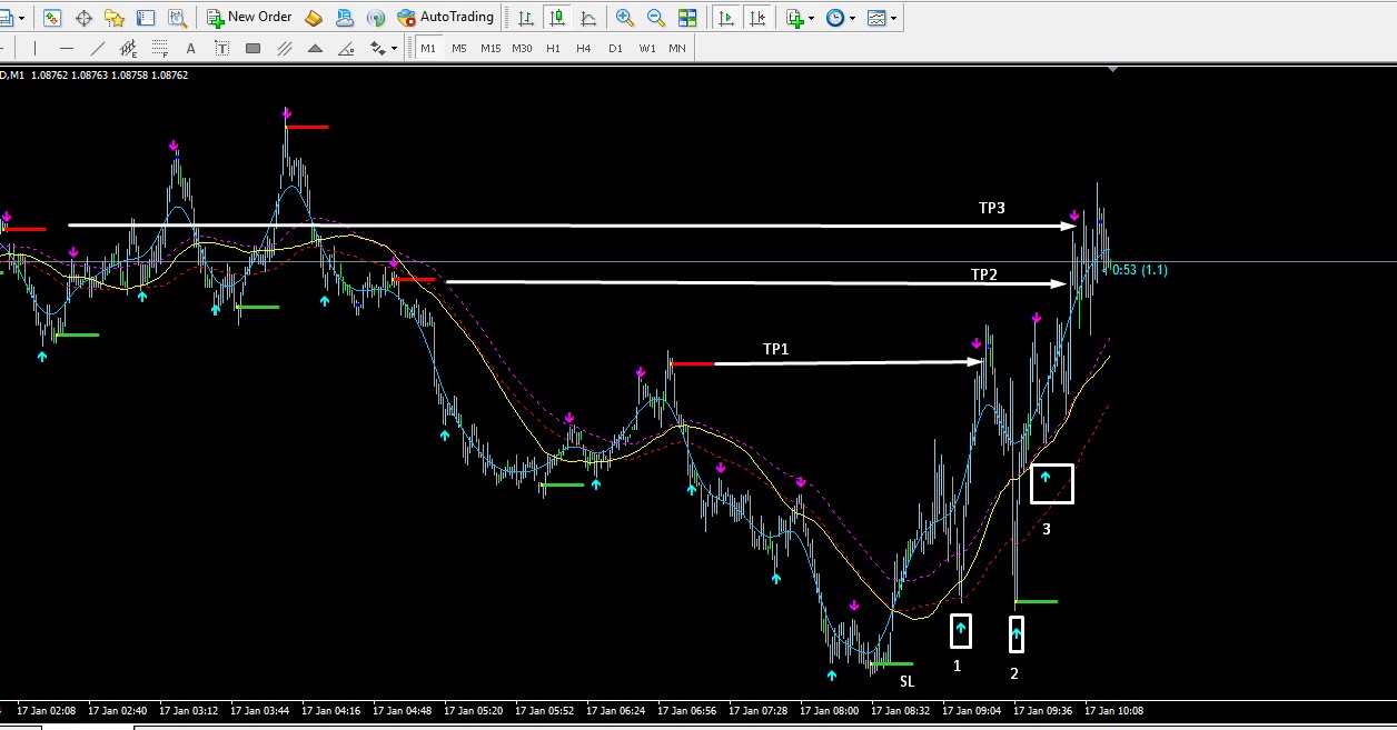 The basic strategy is when the price is below the SuperTrend line the direction is down and when the price is above the SuperTrend line the direction is up. Very simple and with the use of these multi settings the trading becomes a lot easier to see when to trade and perhaps even better, when not to trade.