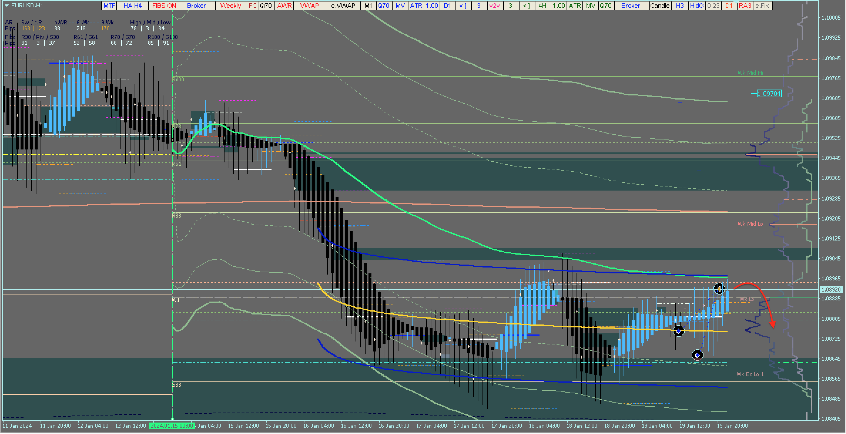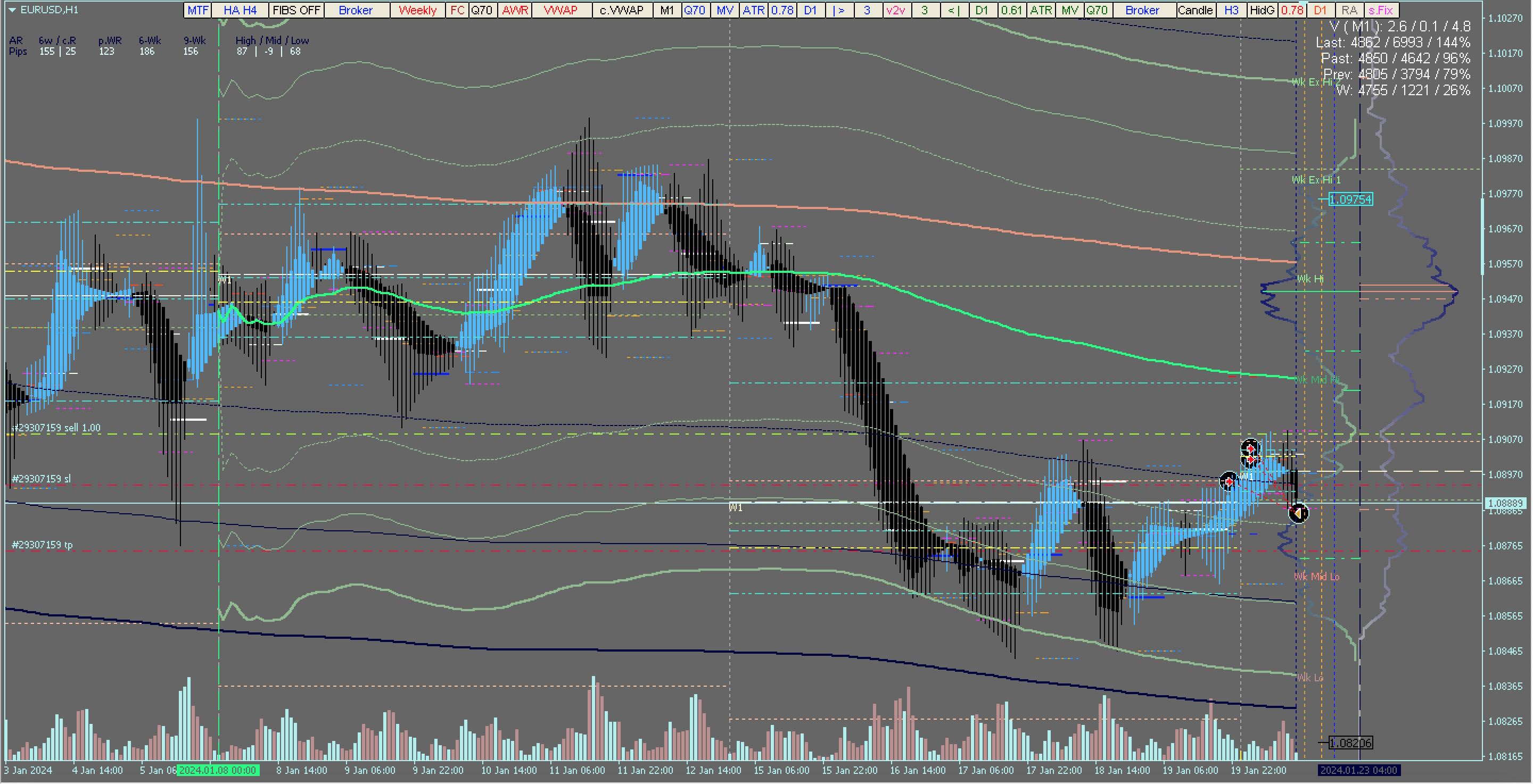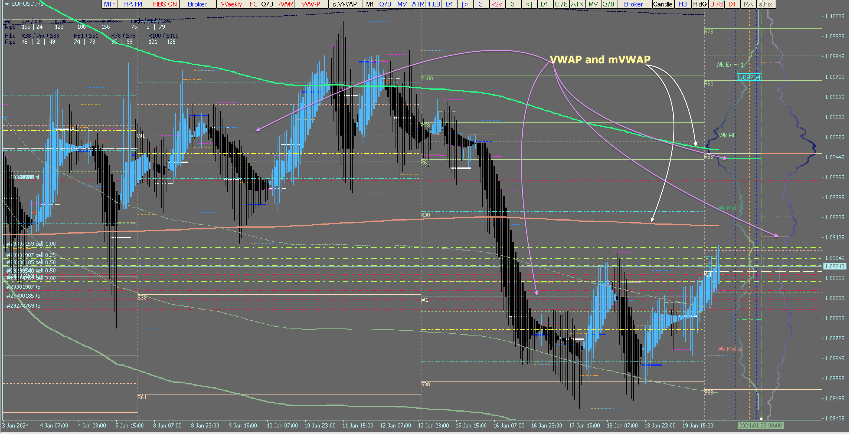 EUR/USD : H1 TF : VWAP : Volume Profile : open & pending positions