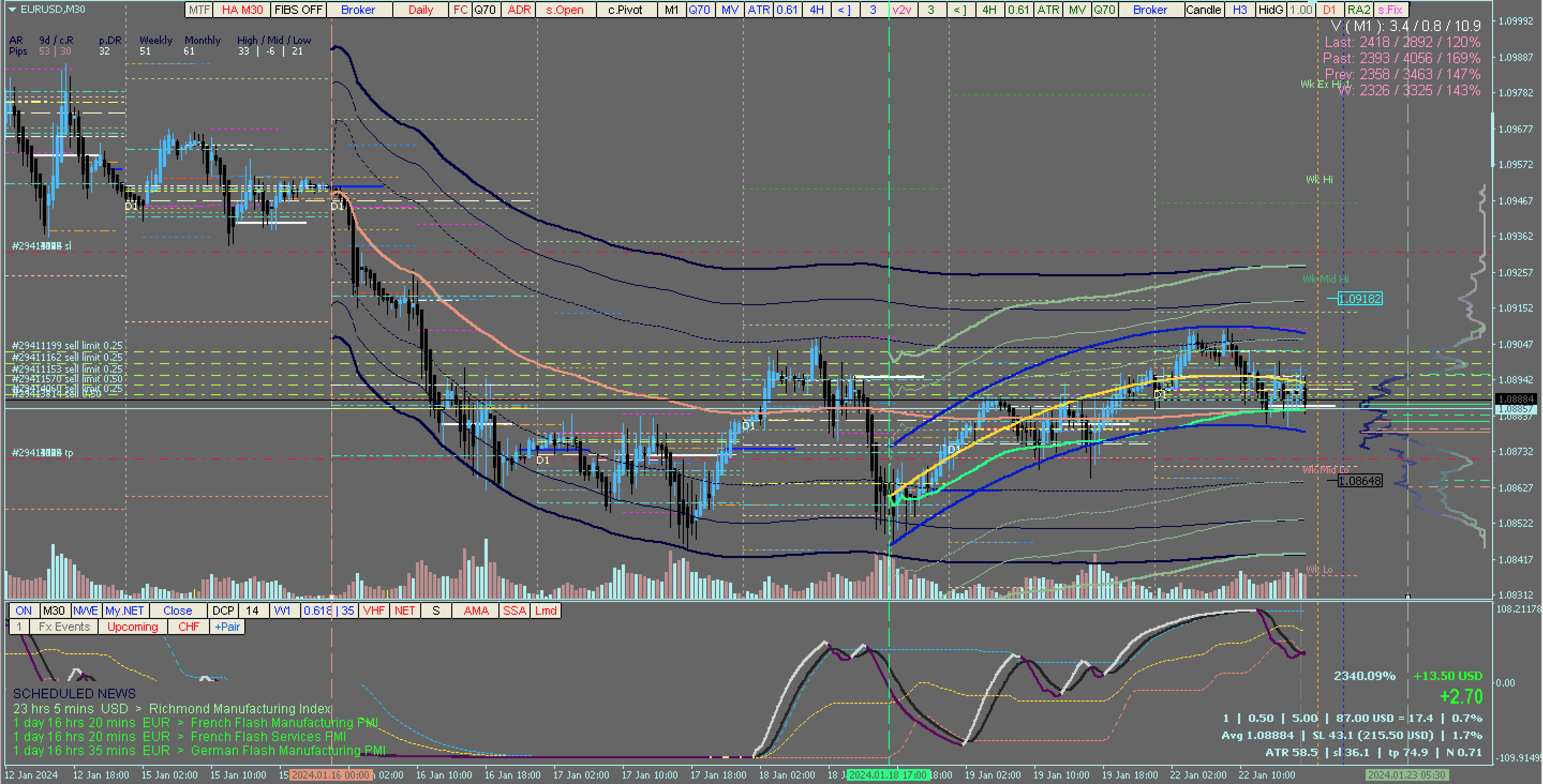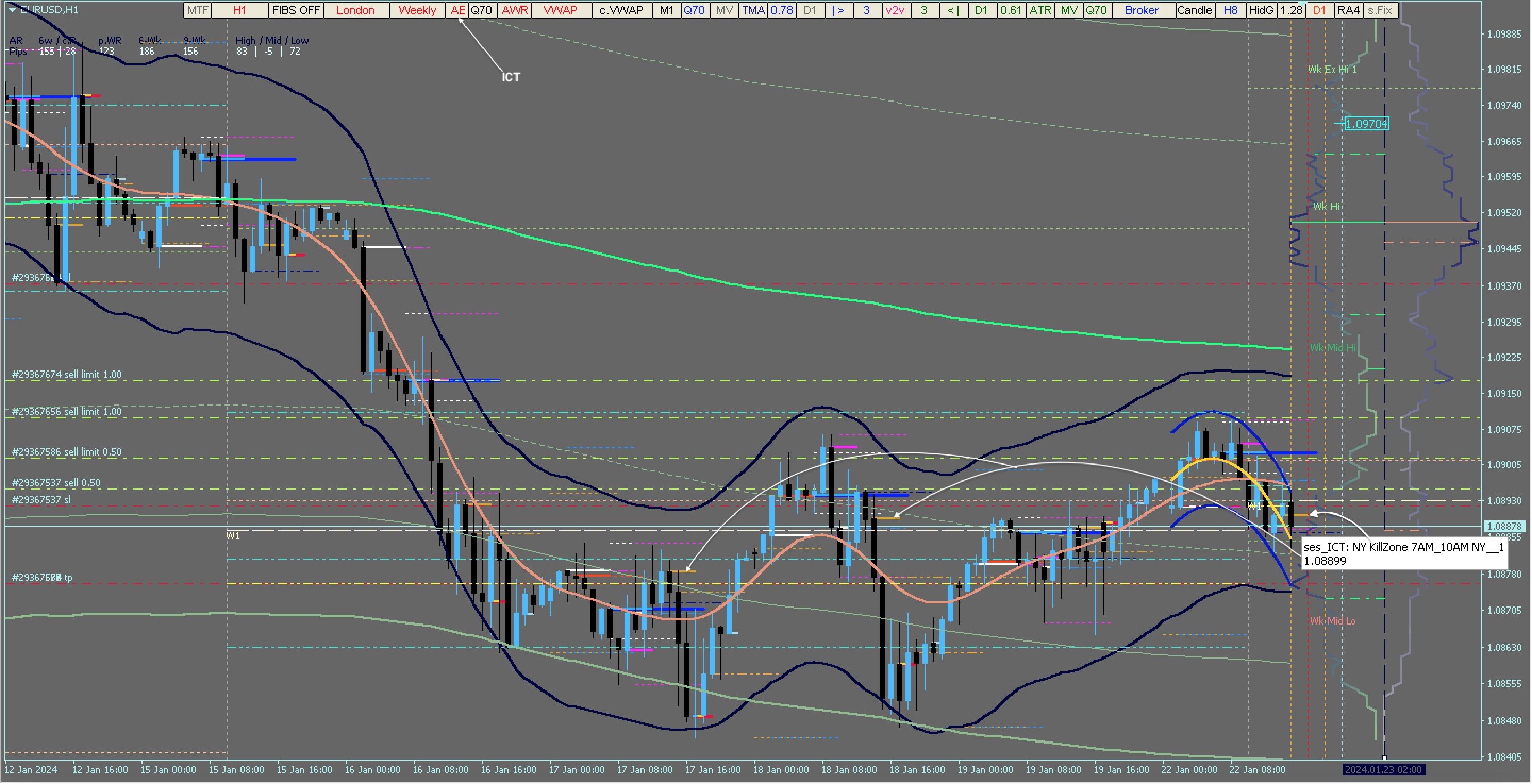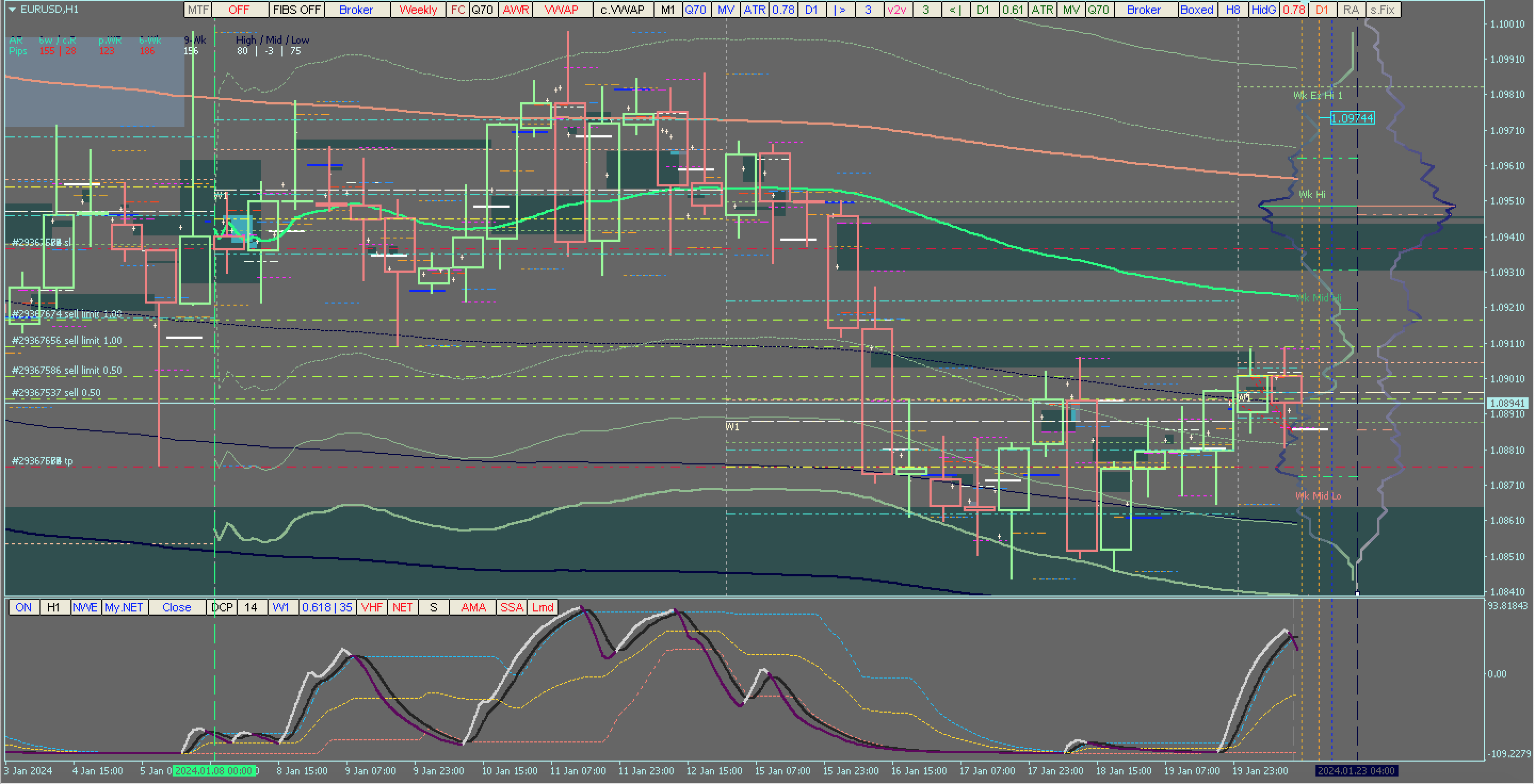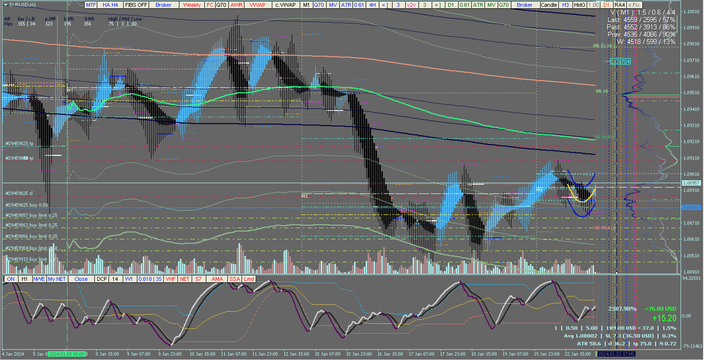 ​​​​​​​EUR/USD : H1 TF : Weekly VWAP : Volume Profile Nadaraya-Watson Estimator (momentum osci): open & pending positions