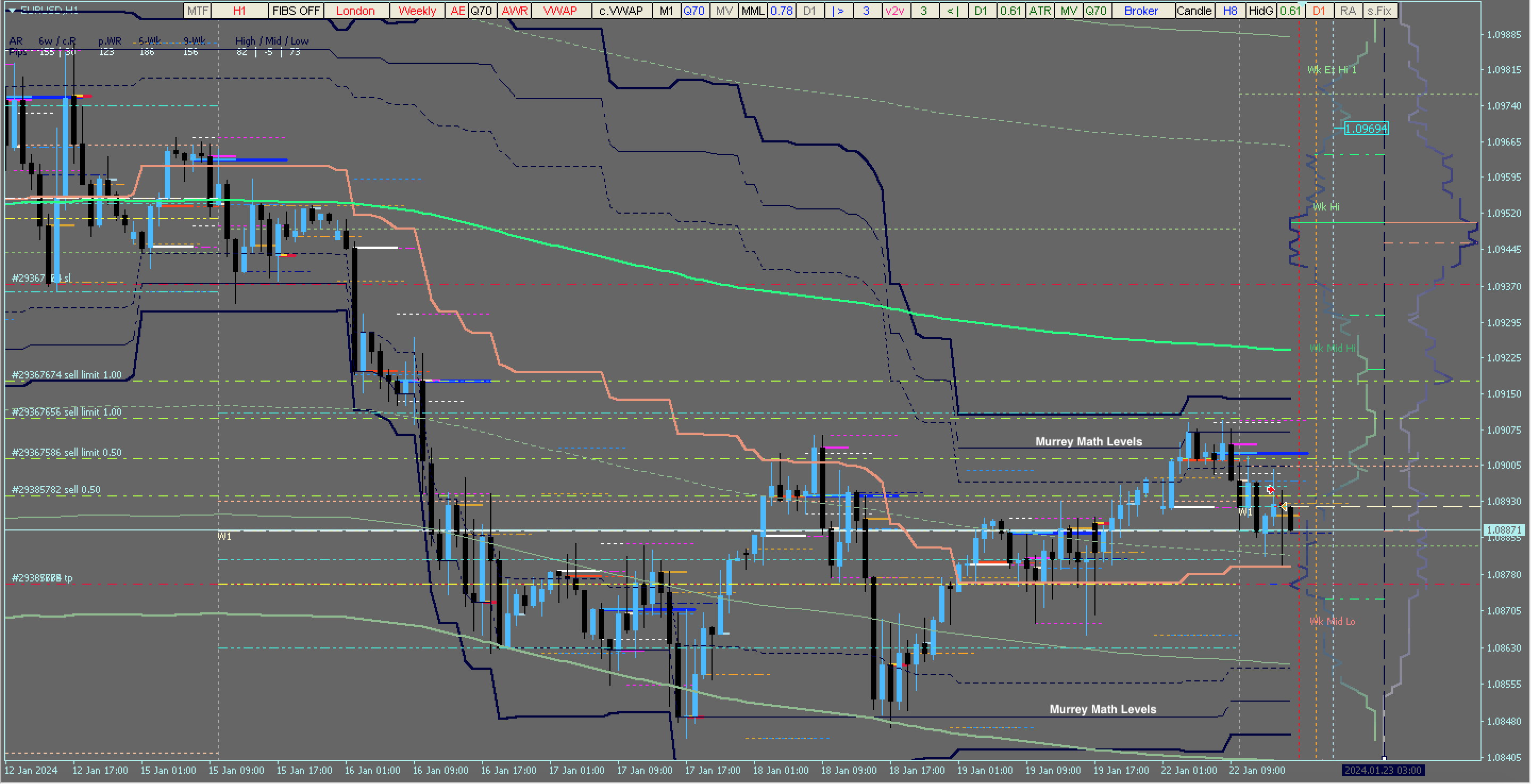 EUR/USD : H1 TF : Murrey Math Levels : updated positions