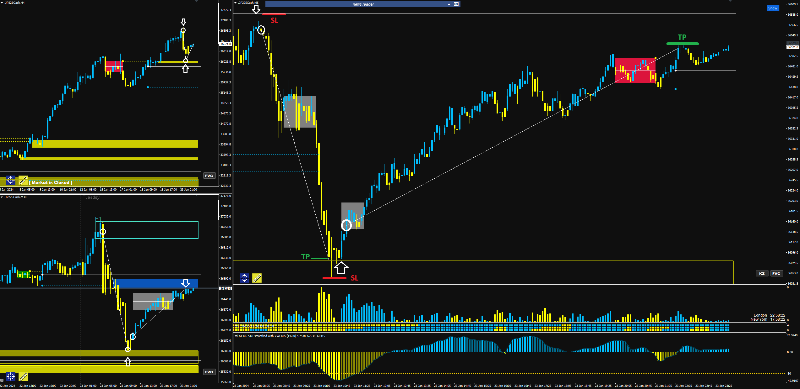 Repainting indicators should NOT be backtested as they will always appear to be PERFECT. For entries and exits follow the rules as I laid out on the BEATS V5 post or feel free to make your own.specialkey wrote: Tue Jan 23, 2024 7:55 pm Hi. Last night the signal was like this (as in the picture), but in the morning the crossbar disappeared and there was only one arrow. So the indicator is being redrawn and the strategy cannot be tested on the history? What should I do? Should I exit the trade? The signal was just perfect but... now I don't even know. Thank you