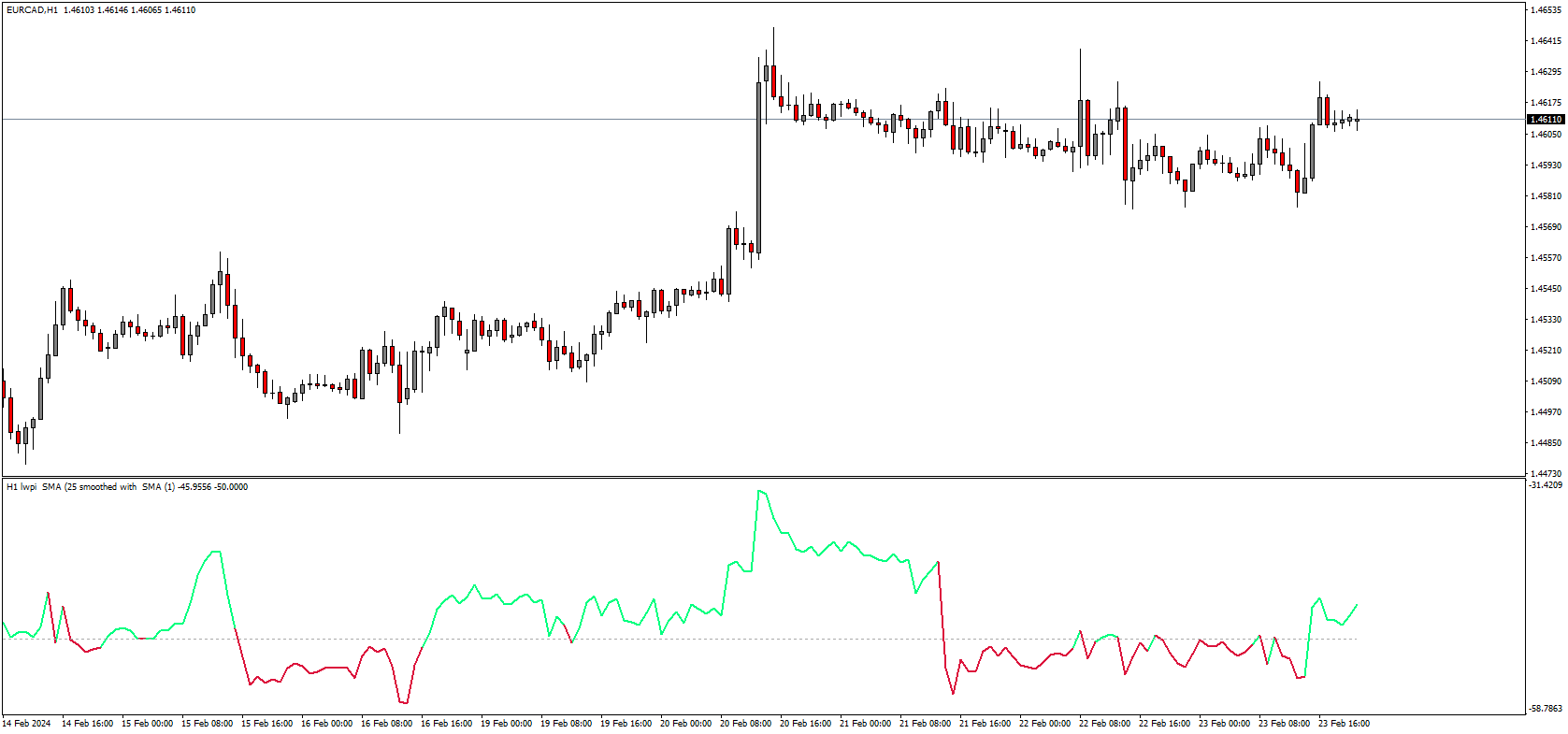 22Greetings @kvak. Could you give us the option to choose price types instead of that open and close in the formula? I think (O-(H+L+O+C)/4) may work better than simple(O-C). Thanks in advance.kvak wrote: Thu Feb 22, 2024 5:57 am This indicator working this way, only look back period for array high/low from indicator is same like LWPI period.