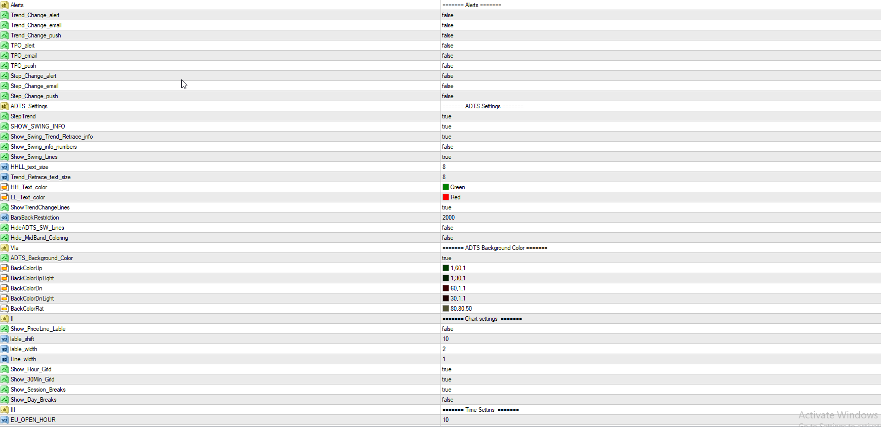 i just used color green for every color cause i dont care , its just to trail stops in this case