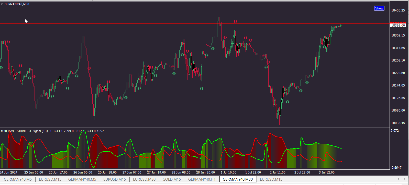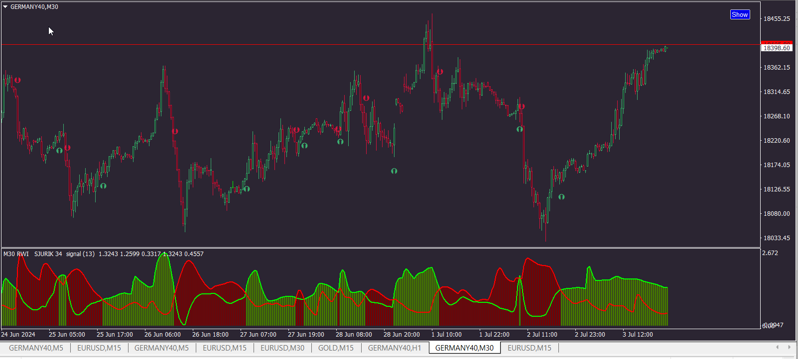 Hello, try this version with Random walk index ....dreamingboy wrote: Wed Jul 03, 2024 9:11 pm I wonder if the same effect can be achieved with Random walk index indicator?