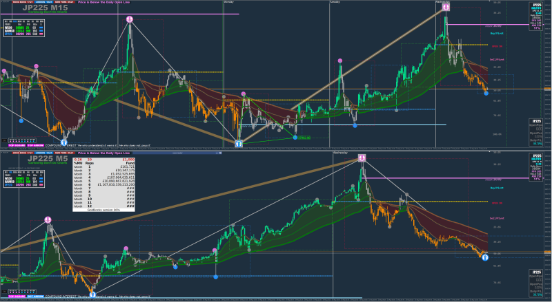2. Taking a SELL trade off the Index Entry level the price continued down and broke below the Daily Open level, presenting my first opportunity to secure profit$ at the 1st Dot indicator (that said, I had already bailed my position as I had decent Pip$ worth booking).