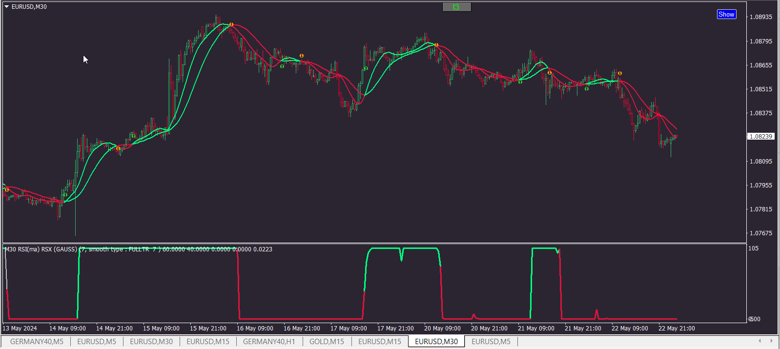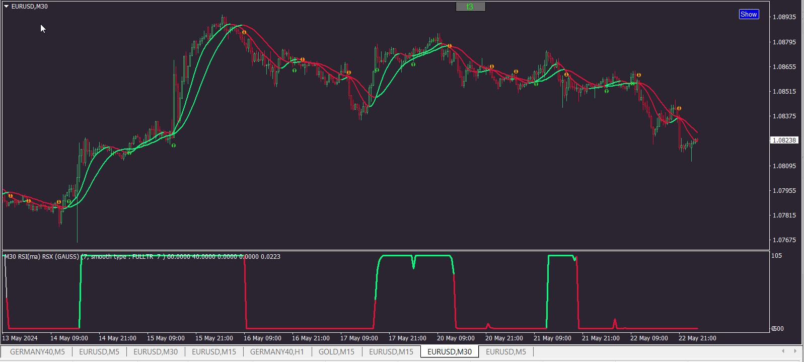 What is your setup? I test indicator last 2 days on 1 min chart eur/usd as I see from your picture and dont see bugs...太虚一毫 wrote: Tue Oct 24, 2023 10:12 am The fill color of step T3 double bands BT, which runs a little longer, will look like this.
