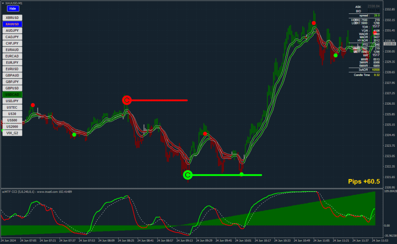 • Took a buy position when the ADX "just" went blue and all histograms were lined up.