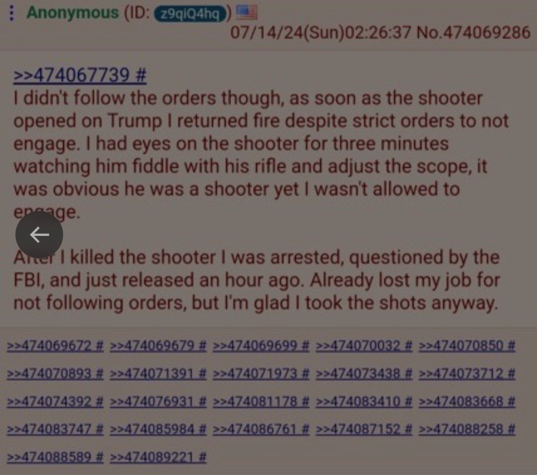 global wrote: Mon Jul 15, 2024 8:58 am Sounds like an inside job by those who were supposed to protect Trump and those attending the Rally. Let's see how they will respond to those revelations.