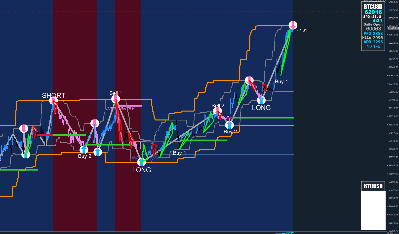 Method: Utilise the Square Semaphore (576) indicator to pinpoint crucial pivot points. These points serve as reference markers for potential trend reversals or continuations.