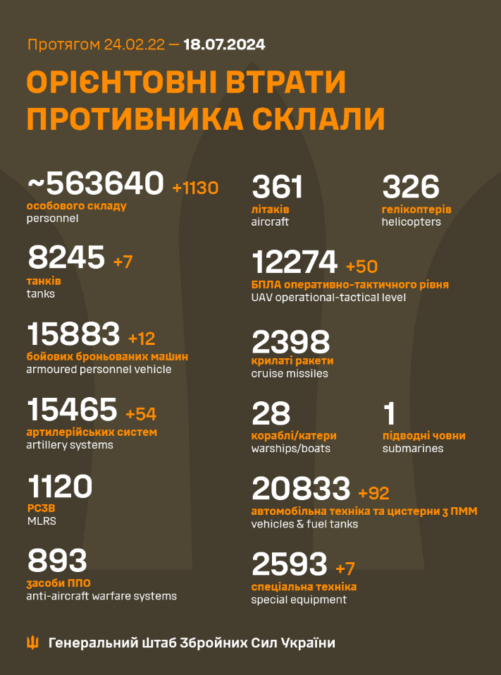 The total combat losses of the enemy from 24.02.22 to 18.07.24 were approximately: