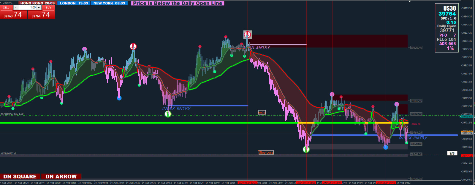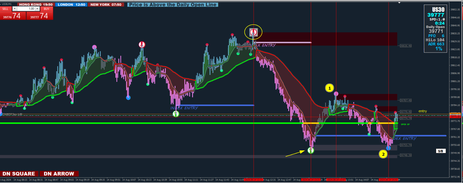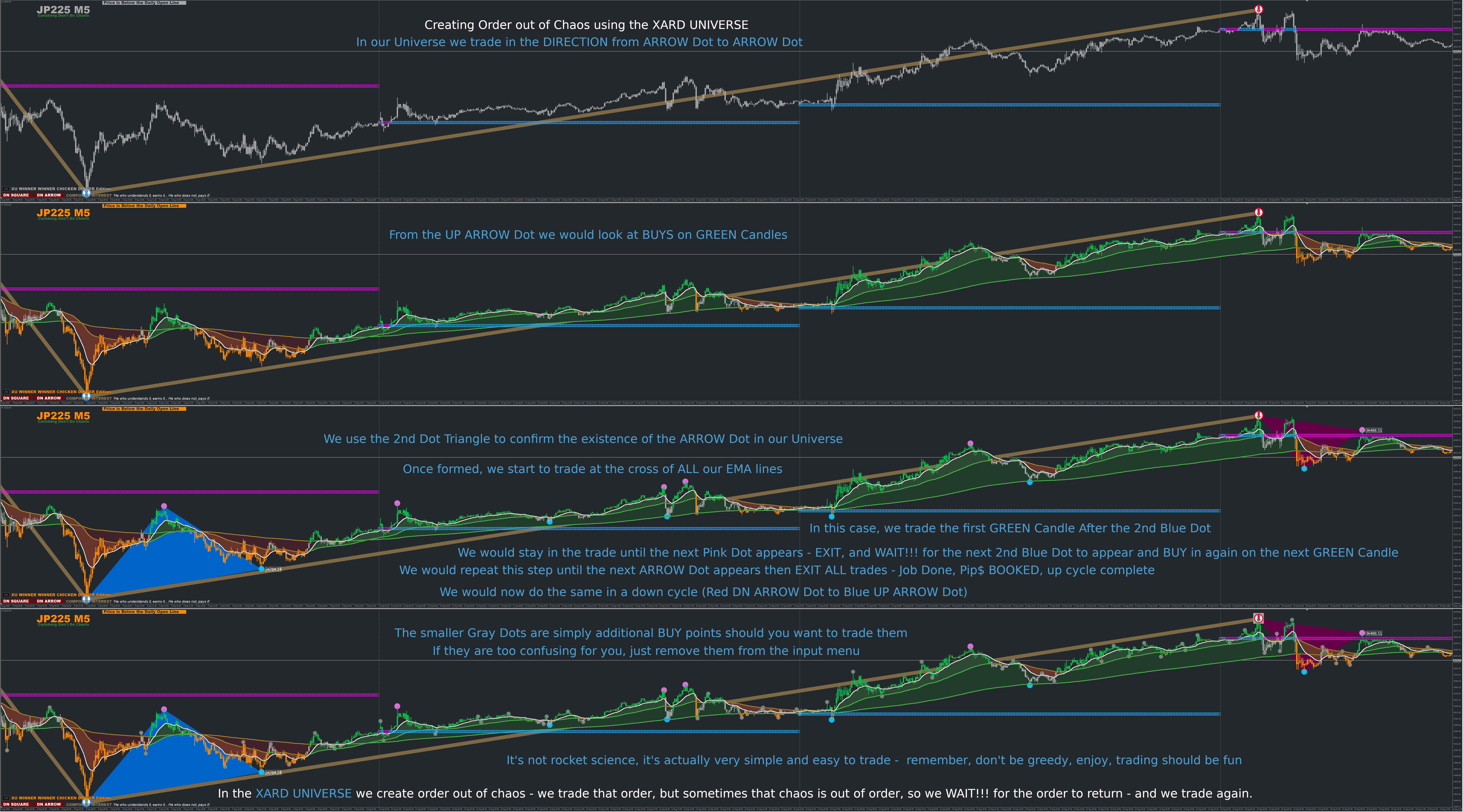 1) Sema - 2) Second dot in corresponding color (blue up/pink down) - 3) Trend - 4) Entry