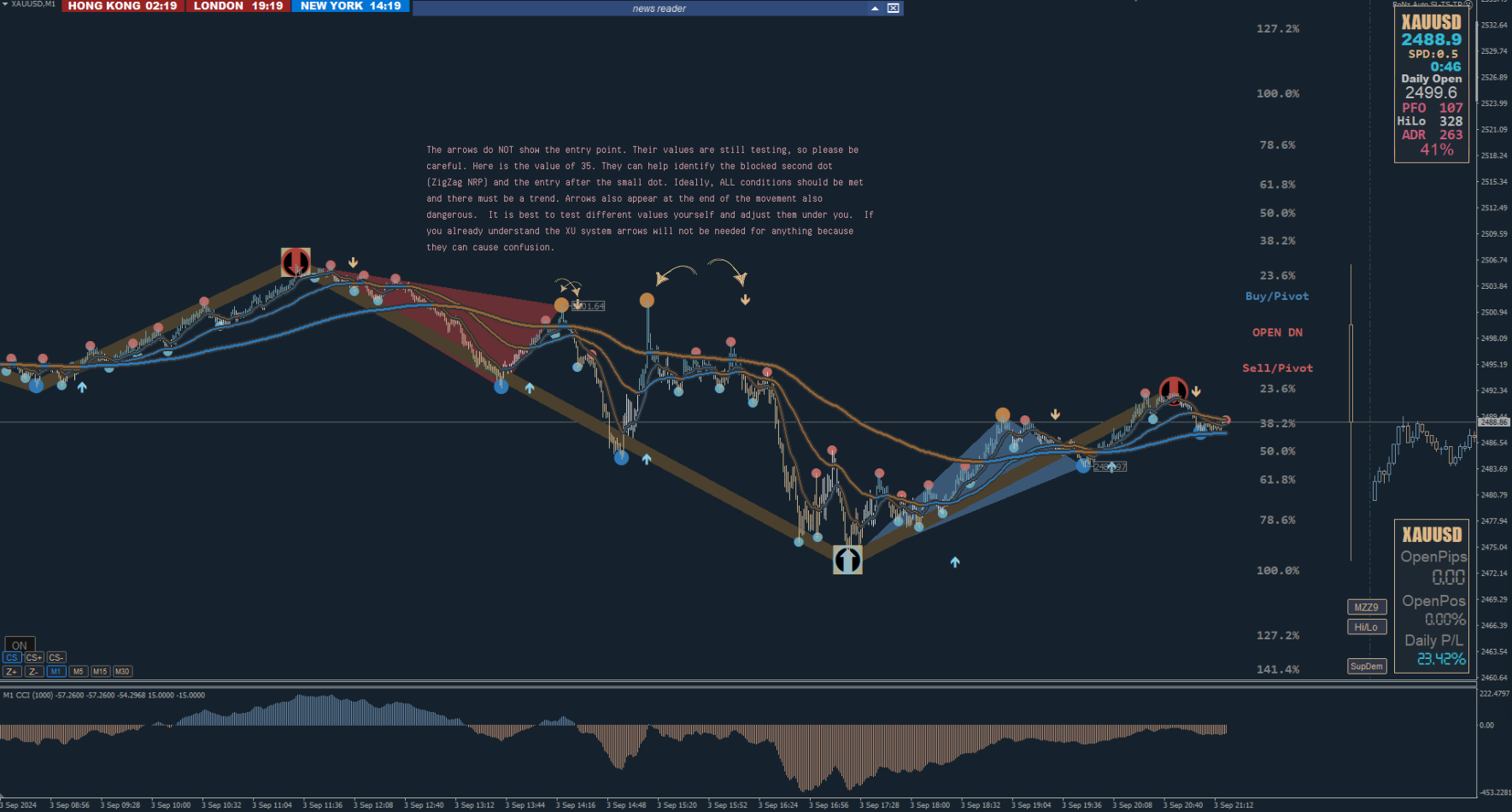 (ZigZag NRP) and the entry after the small dot. Ideally, ALL conditions should be met and there must be a trend. Arrows also appear at the end of the movement also dangerous. It is best to test different values yourself and adjust them under you. If you already understand the XU system arrows will not be needed for anything because they can cause confusion.