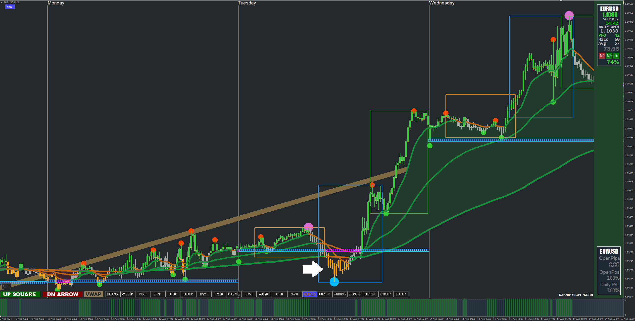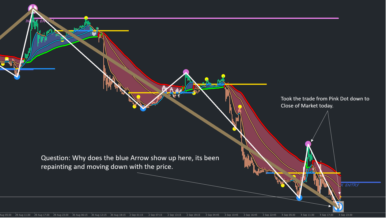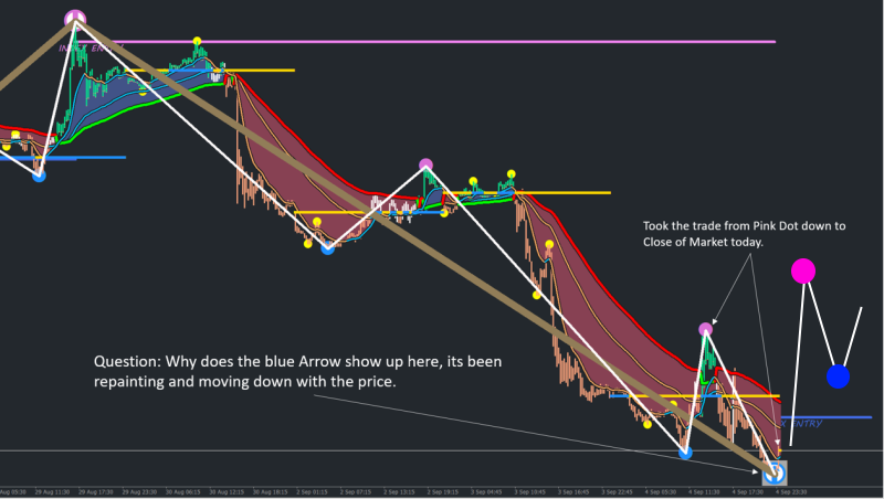 I did have a question on the Image below, since AM the BLUE UP Arrow has been visible and repainted and went down with the price. Its been a bit confusing for me, as I felt price was at a reversal point. But I saw it happen on all pairs today, so avoided it, but would be keen to understand why it happens.