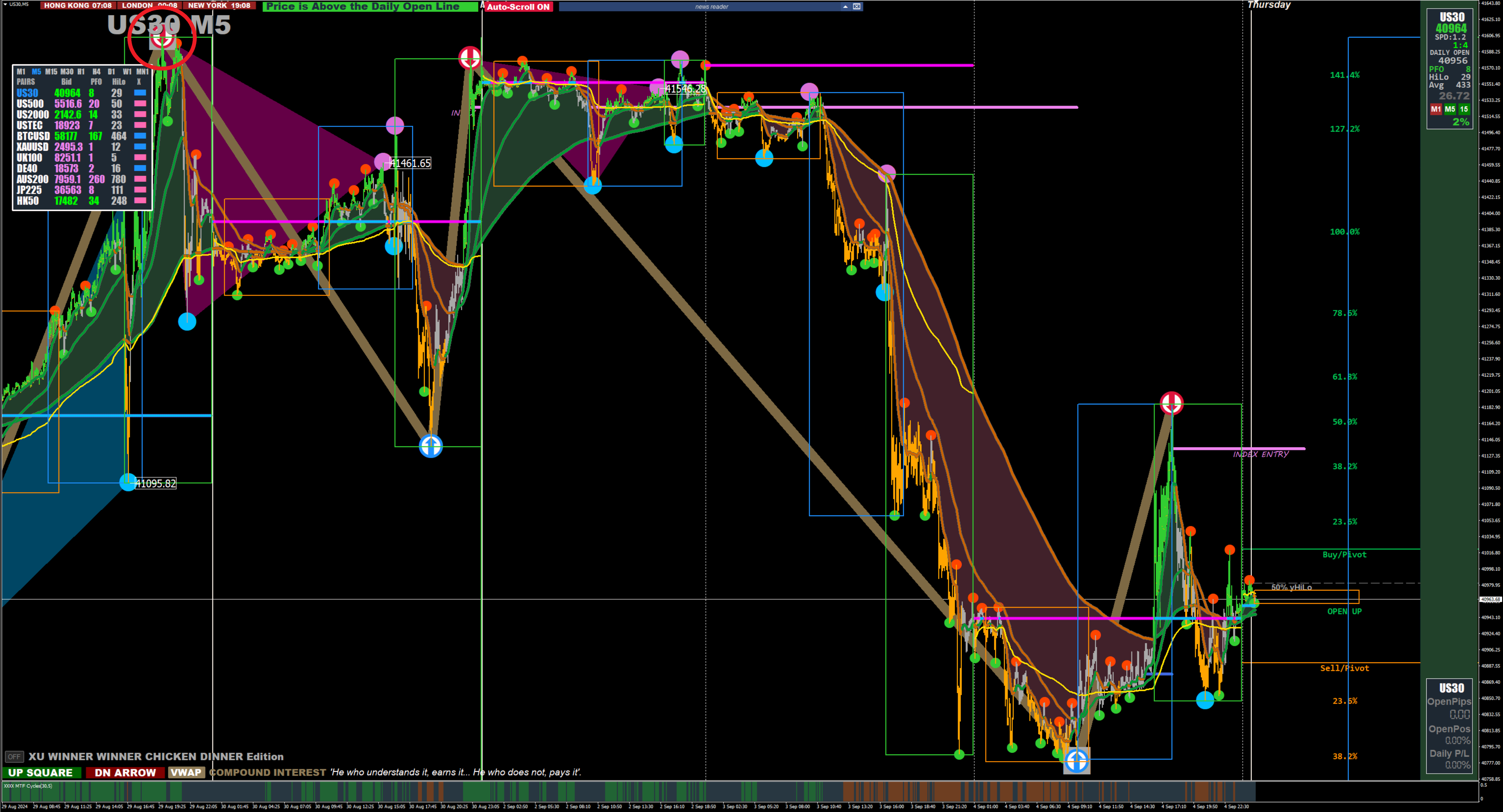 17138All Semaphores will RECALCULATE if price pushes beyond it. They are only set in stone when a new Semaphore the same size with opposite colour appears. IE in the image below the Blue Square Semaphore can still move lower if price moves lower, the Red Semaphore in the top left will never move as there is the blue on the low.Phoenix36 wrote: Thu Sep 05, 2024 7:31 am Still learning, but took a few trades today. Got stopped out in the direction it was supposed to go anyways, but later realised I did not spot the AMD formation. But recovered the loss later in the day.