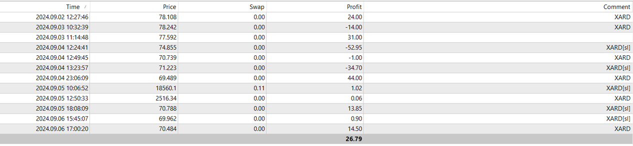 Phoenix36 wrote: Sat Sep 07, 2024 12:03 am Week 1 of TRYING to UNDERSTAND and then STICK to the XARD trading system.