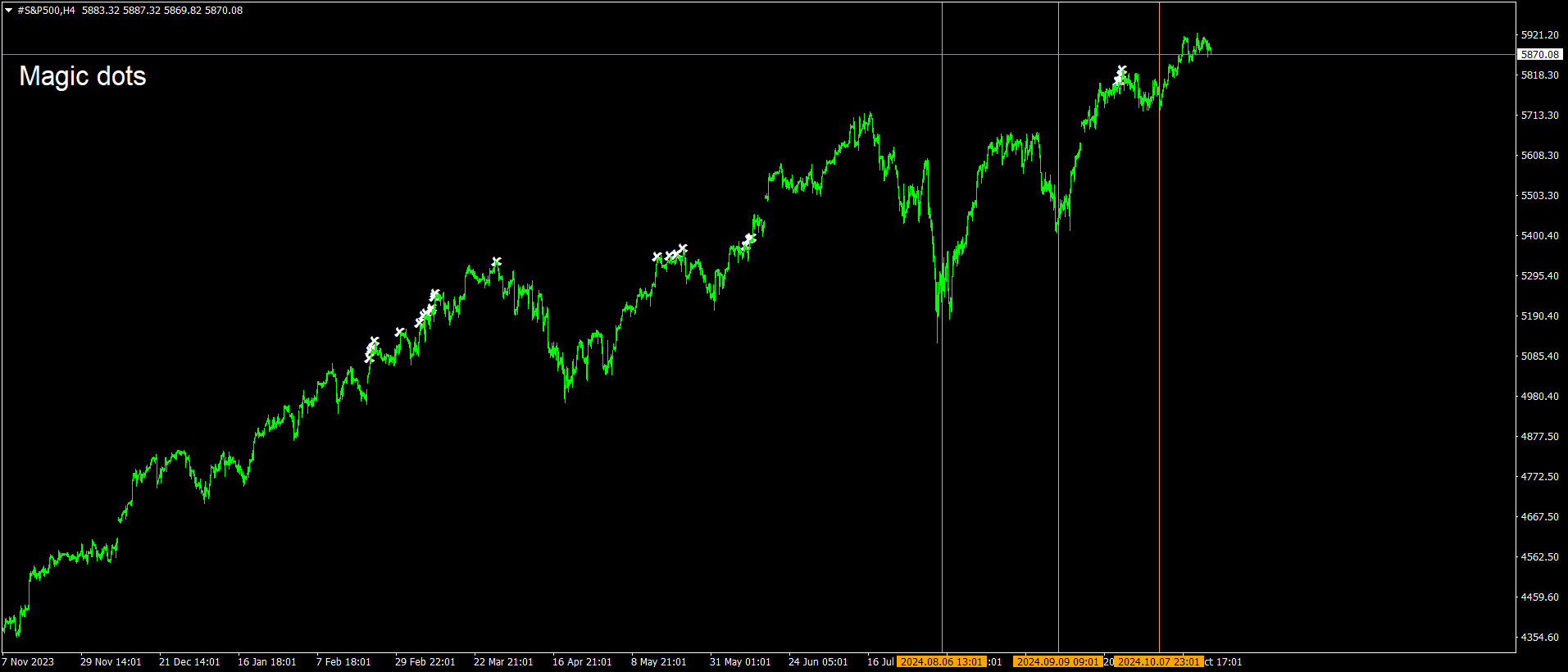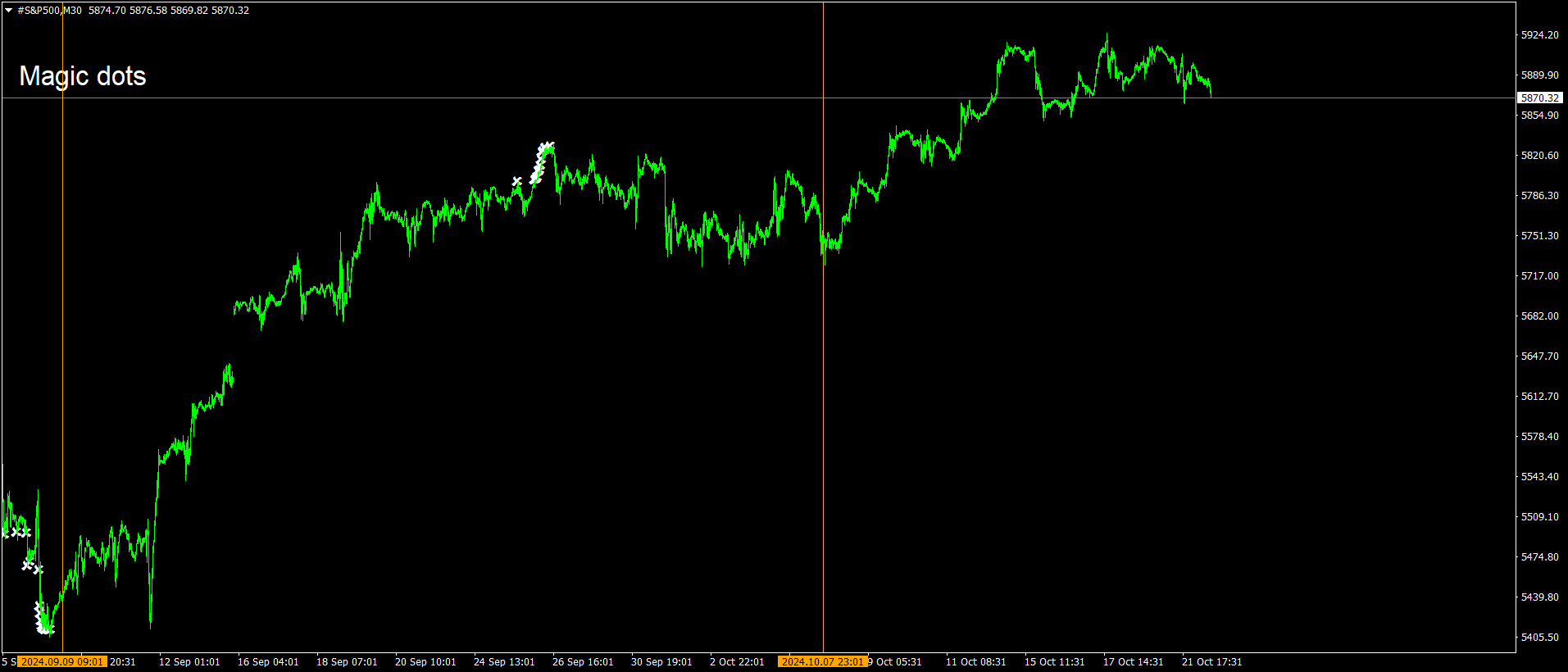 323magic dots indicator is a norepainter multy timeframe inidcator.