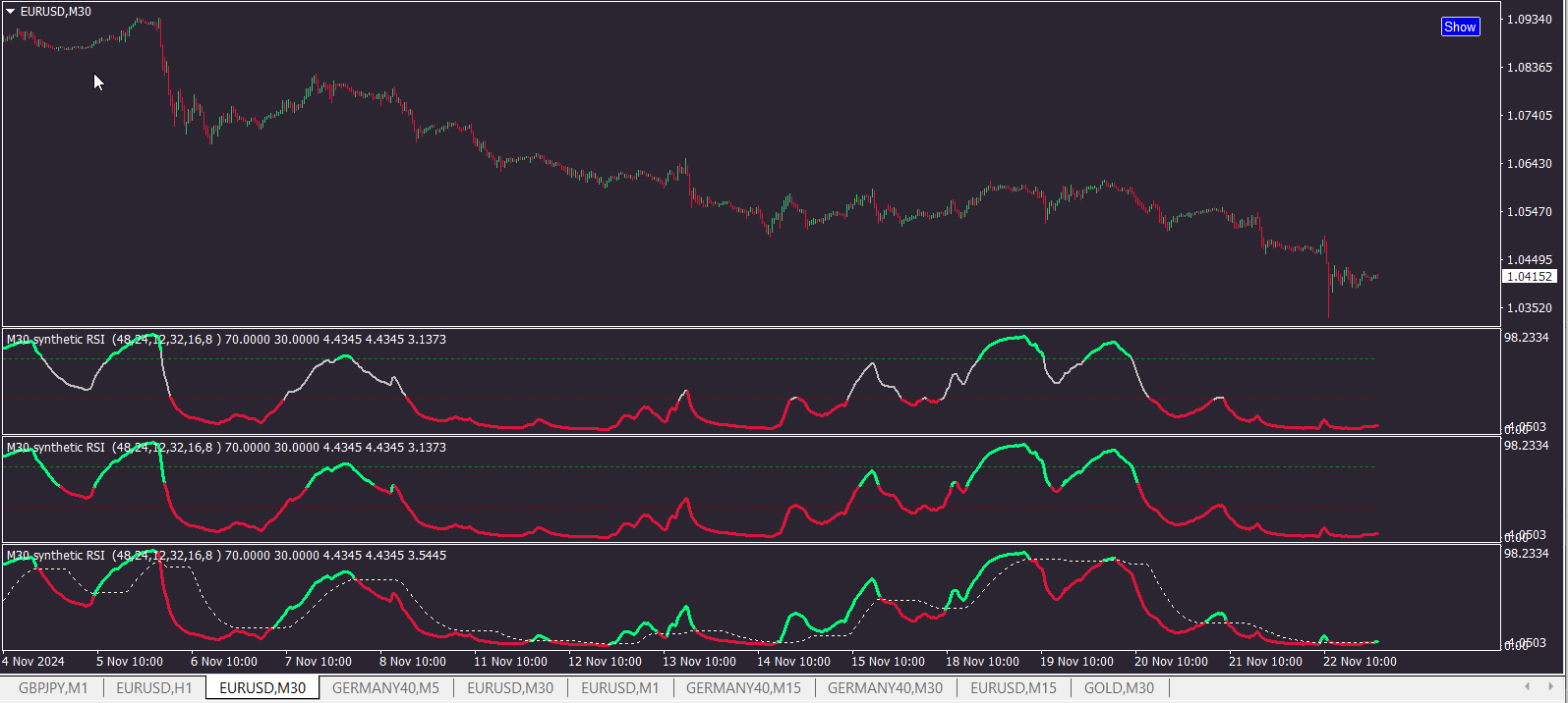 2947Hello, like this?Shabba23 wrote: Tue Nov 19, 2024 9:21 pm Synthetic Rsi has proven to be one of the best rsi indicator, especially in defining trend direction. When used with Xard trend following system, it brings clarity and simplicity to decision making, especially for beginners like myself in the forex station community. Each levels(80,50,20) of the indicator resonate seamlessly with Ema(233,55,13) without ambiguity. I will implore beginners in Xard system to test synthetic Rsi out.