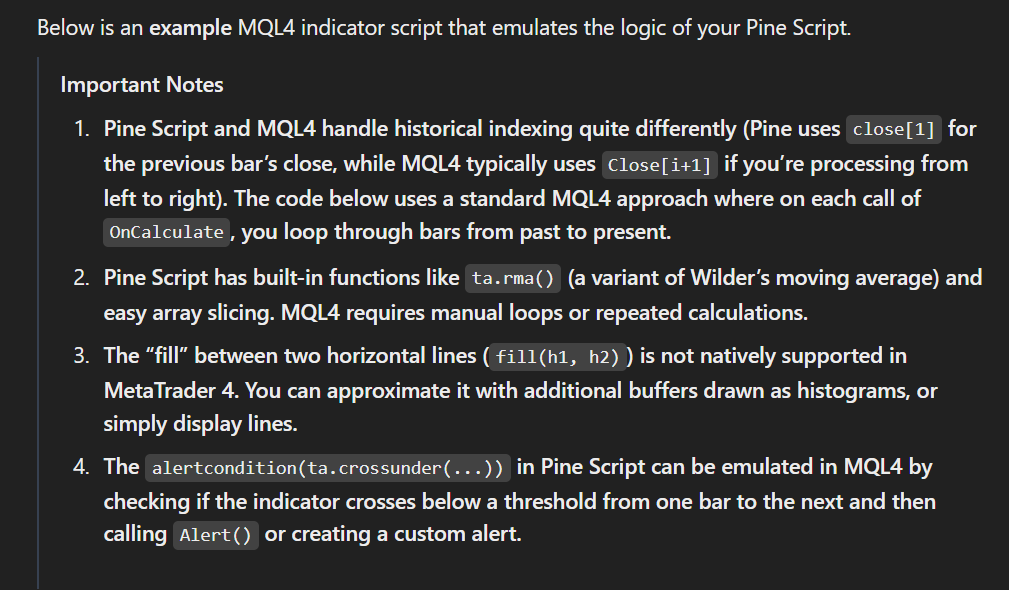 Hi all. I was trying to convert a PineScript indicator from Tradingview over to MQL4 for MT4.