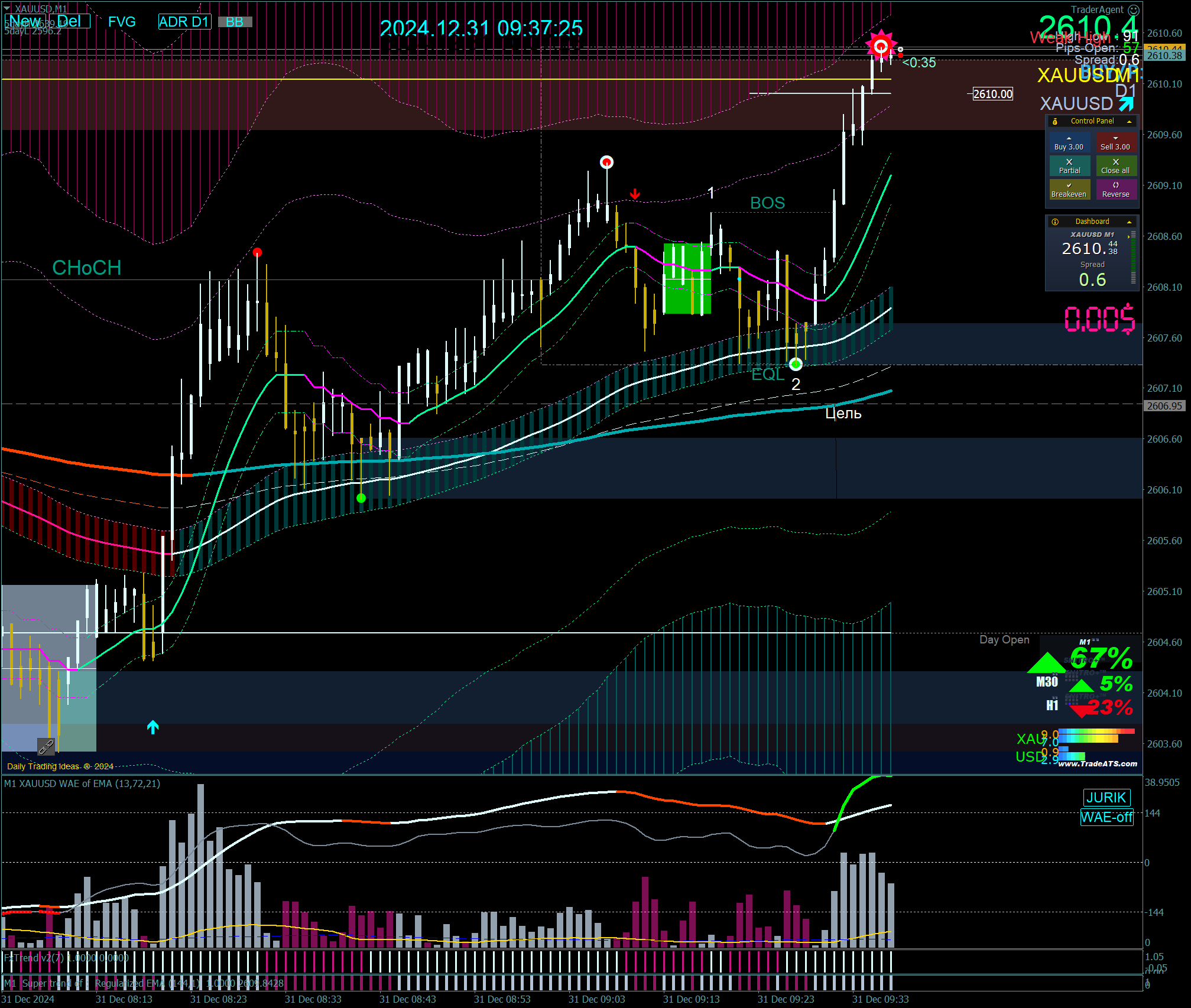 In reality, I don't combine them to filter signals; I simply switch between indicators to use them individually. Sometimes I use TDI, and other times I use Jurik to confirm the trend. TDI is an optional choice for finding entry points. If you find TDI difficult to use, just turn it off, but I can work with both!
