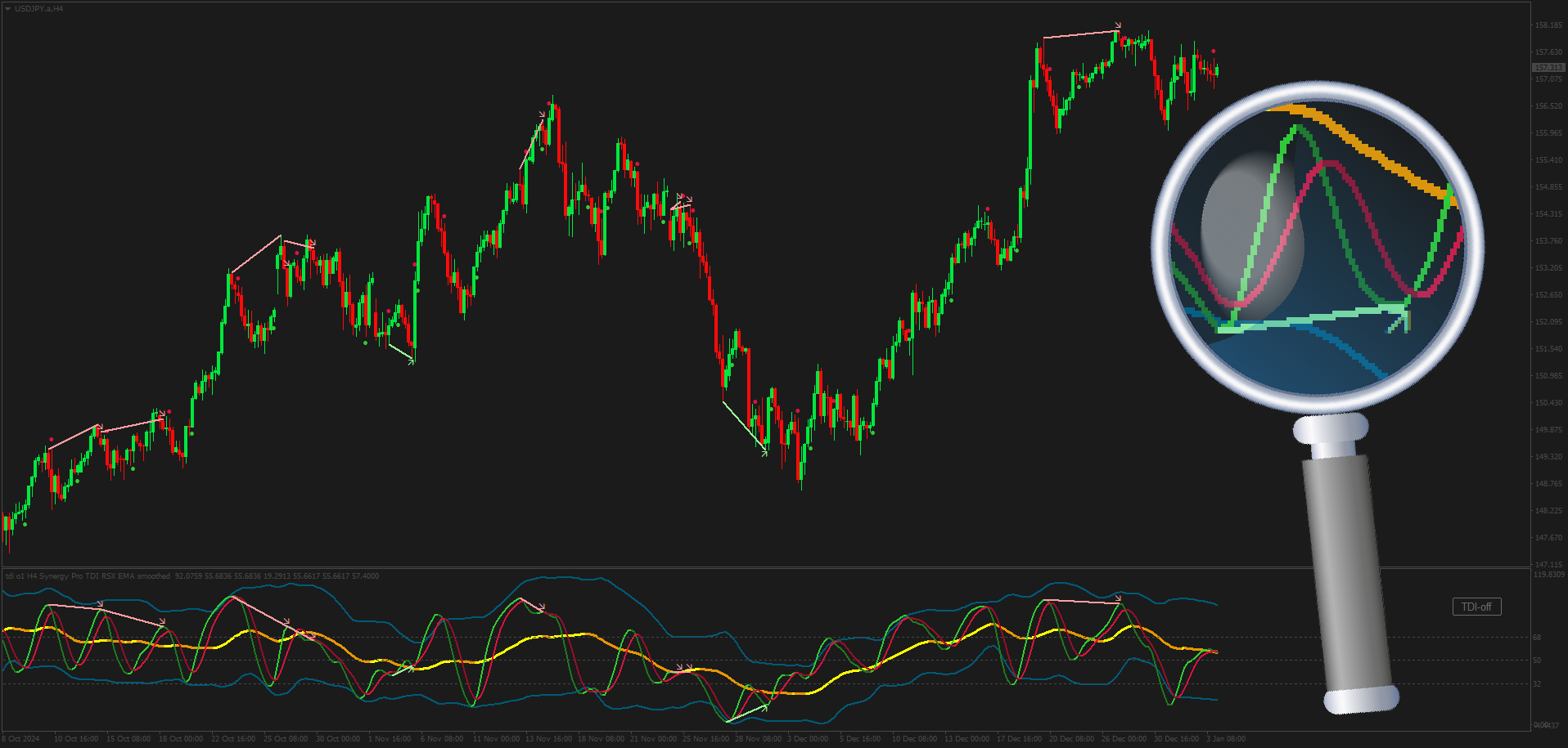 Our first TDI featured for 2025 is Mrtools's TDI Divergence with full slope color-changing on all RSI lines + the Market Base Line. This version will suit traders who do away with certain components of the TDI eg. removing the Volatility Bands etc. D/L: post1295557007.html#p1295557007