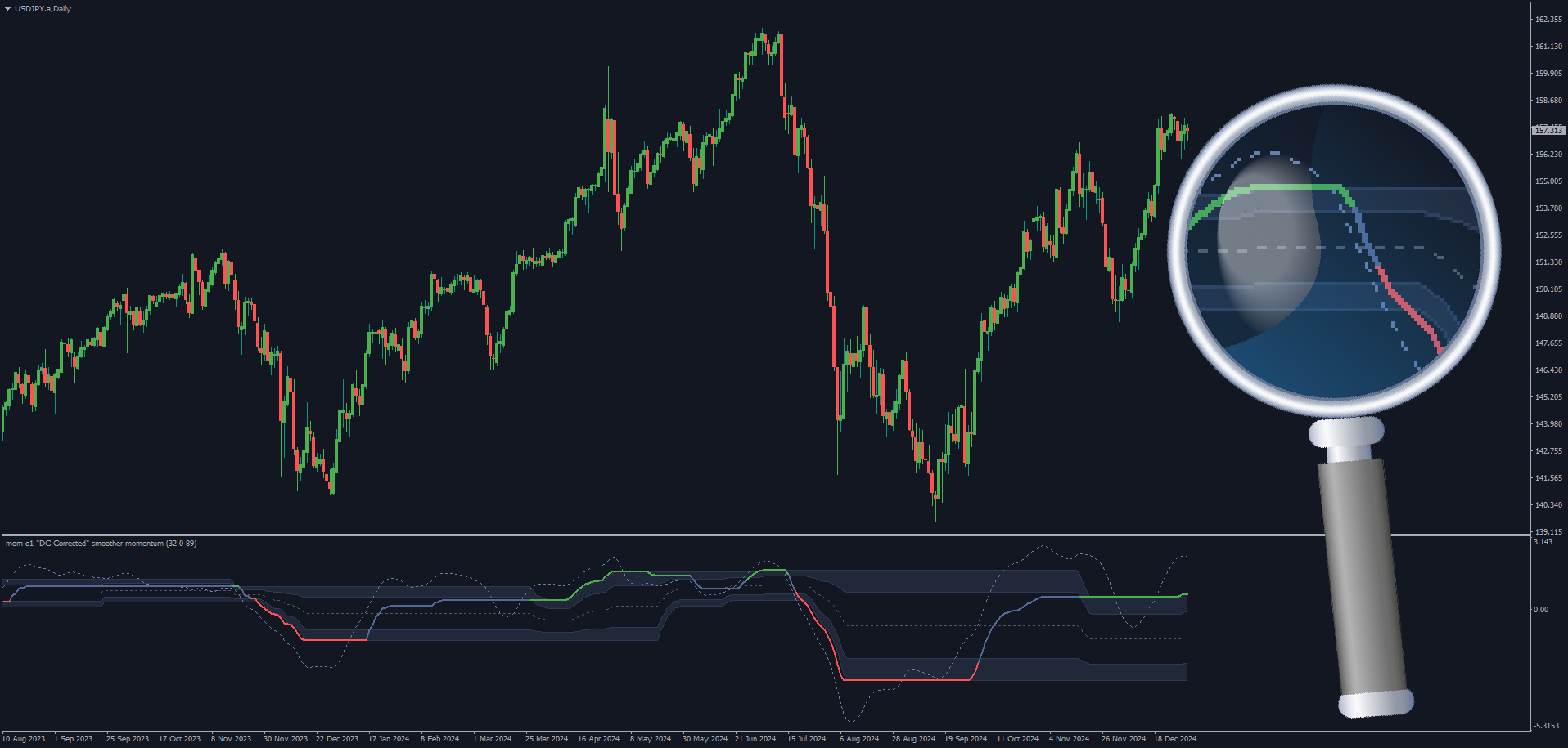 The Corrected Smoother Momentum indicator utilizes a Adaptive EMA Deviation in it's "Corrected" values instead of a Standard Deviation, making it less sensitive to whipsaws. Accompanied by Donchian Channels, this MOM indicator will cater to all traders: post1295557188.html#p1295557188