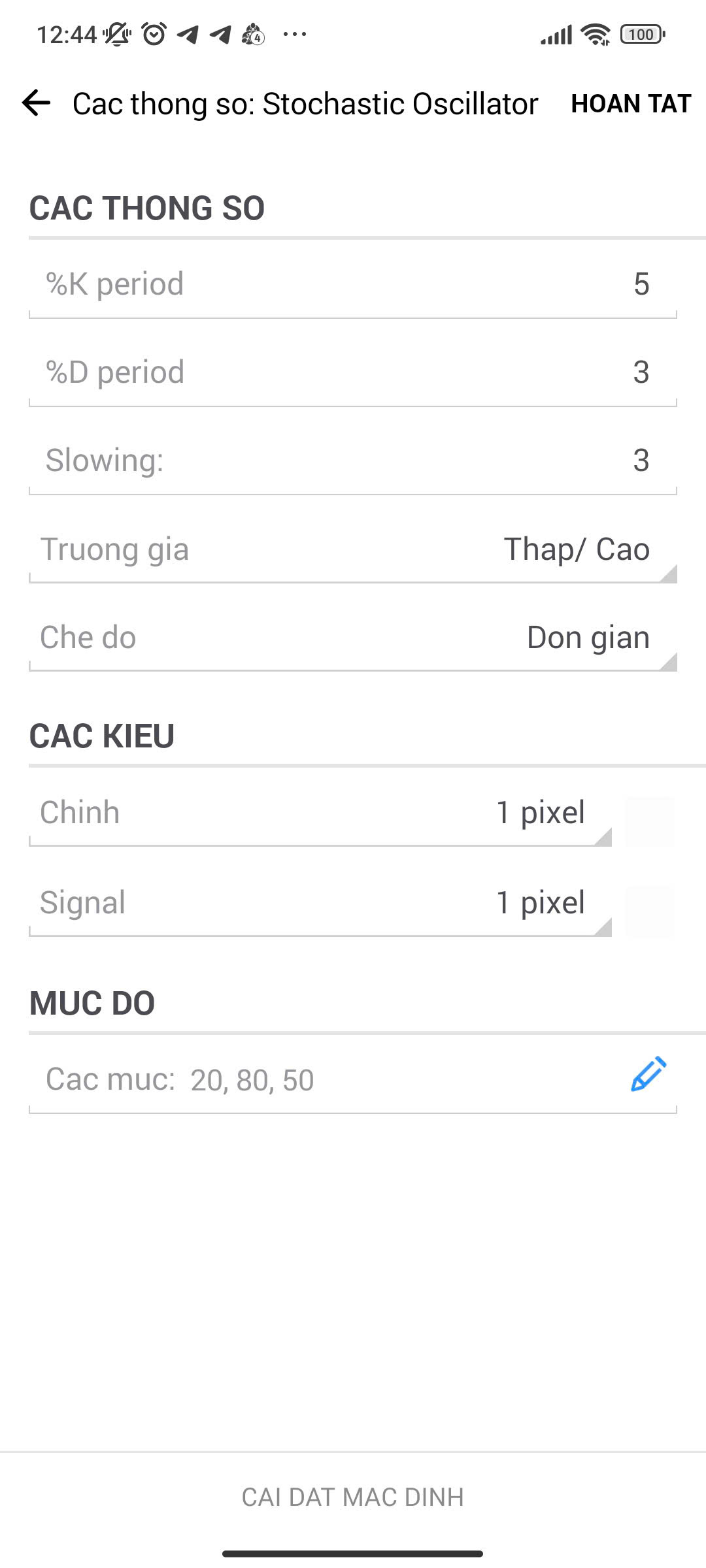 Meanwhile if to set up on desktop, there is no option to choose according to Stochatic signal