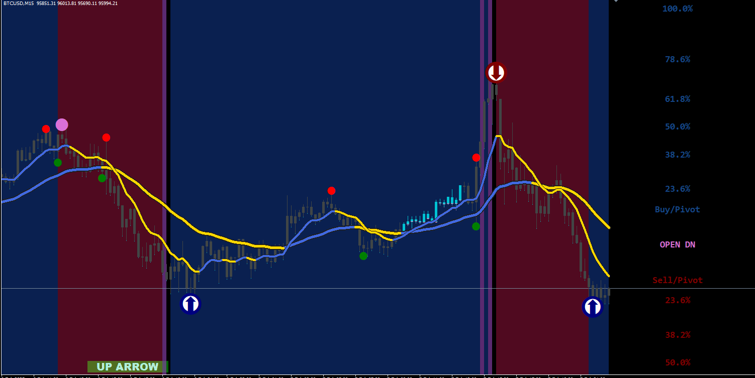 Only Trade off the BIAS of the last ARROW DOT i.e. if Last Arrow is UP then look at BUYS only.