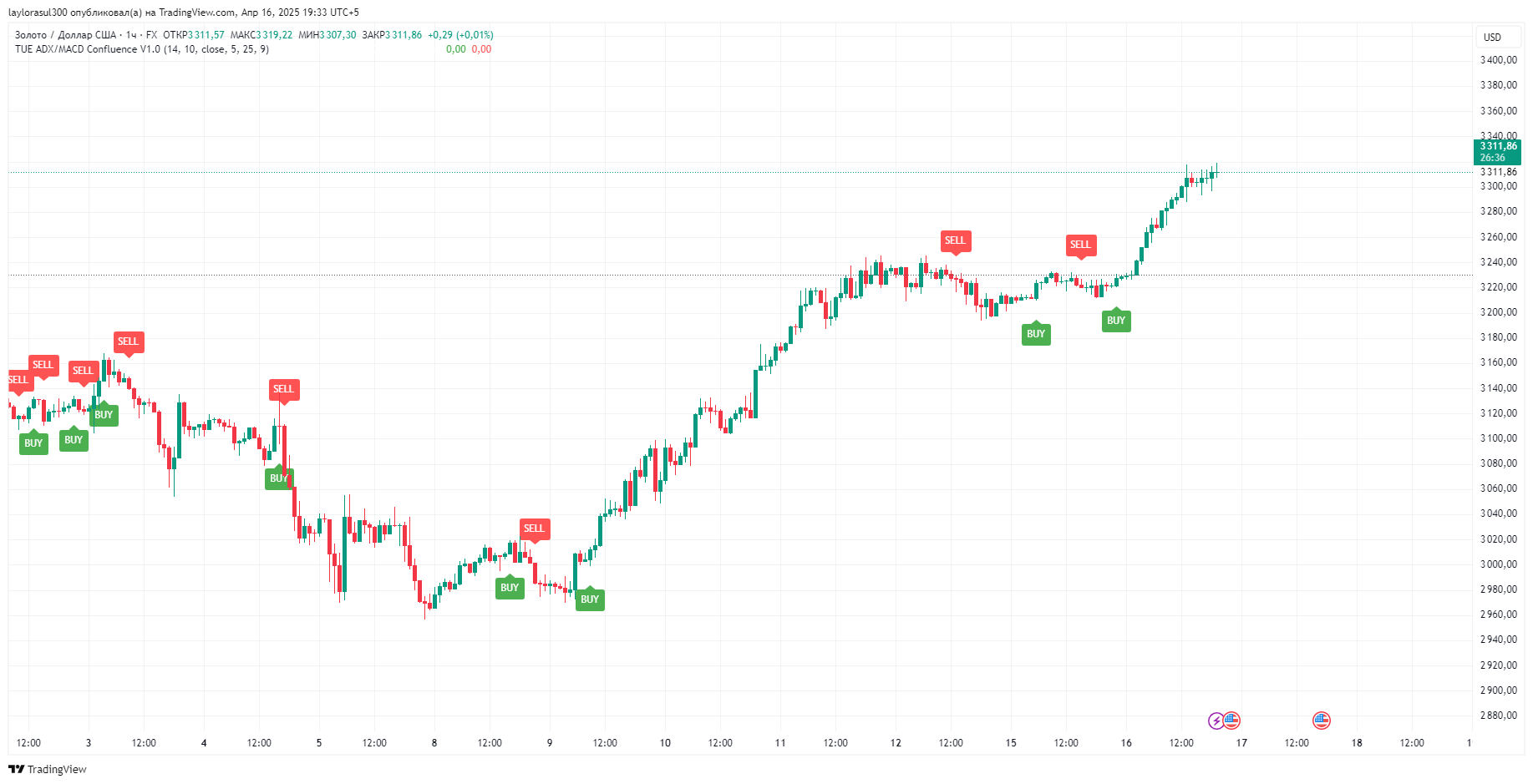 This technical indicator is designed to generate BUY and SELL signals based on the confluence (confirmation) of both the ADX and MACD indicators.