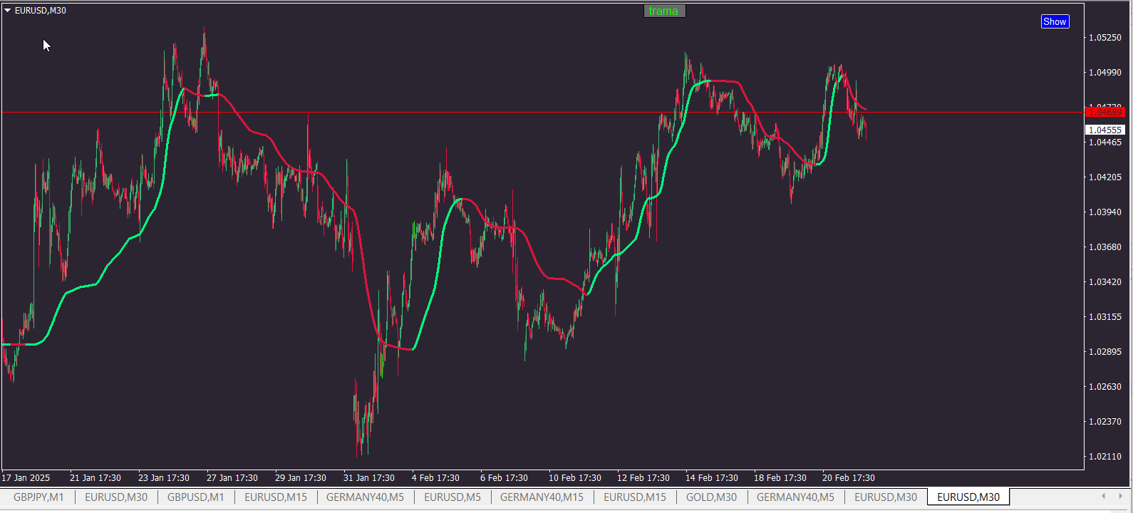 The TRAMA works similarly to other moving averages, but it has the added benefit of being smoother when the market is moving sideways.