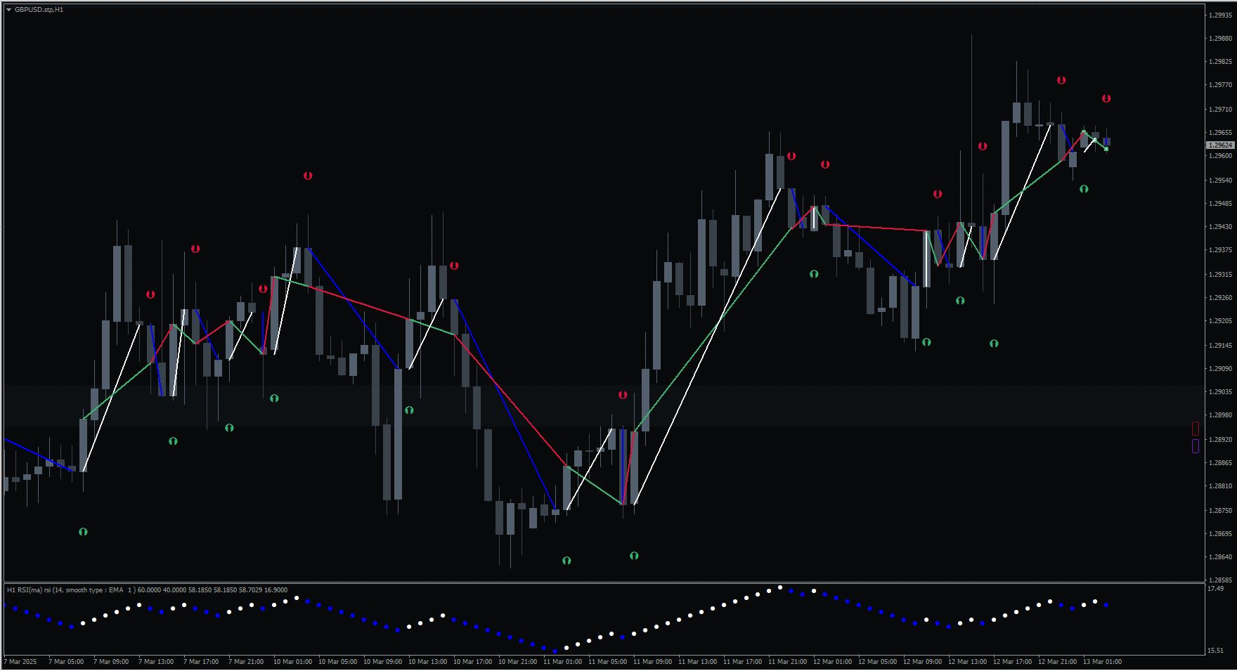 - the image below is from the setting "Change color on RSI cross MA and level cross". It look like it draws arrows on every slope direction change somehow bro