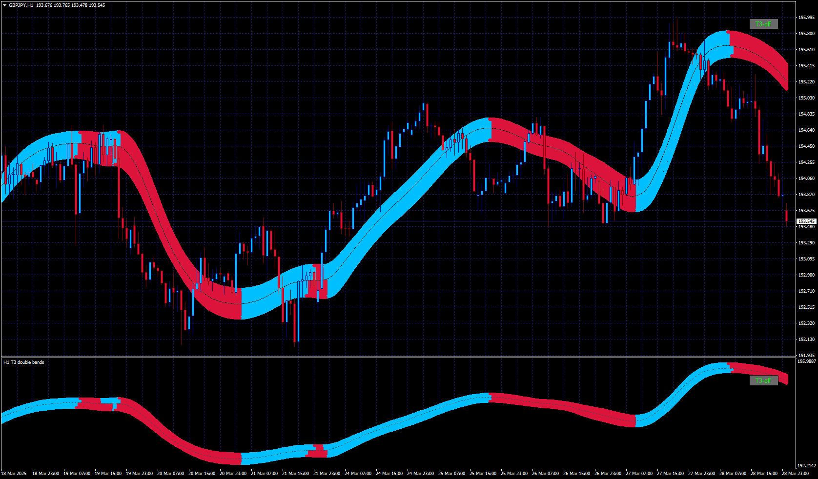 T3 Double Bands (ATR Adaptive) filled for on-chart & separate window