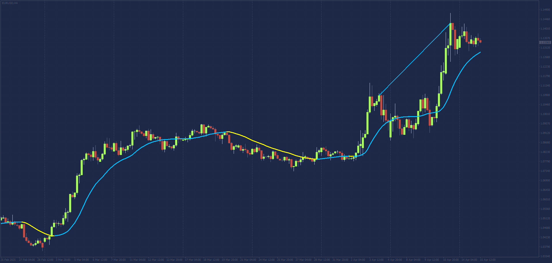 When the upper and lower lines of the bands display an identical slope, the fill color changes to signify a consistent trend in their movement. This visual alteration serves as an indicator of the prevailing direction of the market, allowing traders to easily identify periods of stability or momentum in price action.