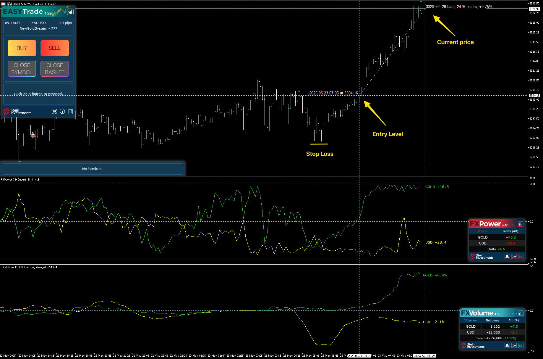 Entry based on FX Power & FX Volume alignment Clean net long divergence: strong GOLD vs weak USD Tight SL – strong breakout – and smooth follow-through