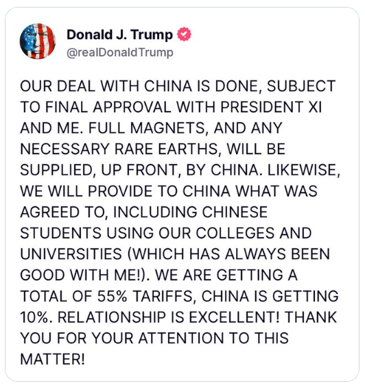 1270*TRUMP: DEAL WITH CHINA DONEOgee wrote: Sat Jun 07, 2025 6:16 pm A lot of people still don't get Trump or how he works.
