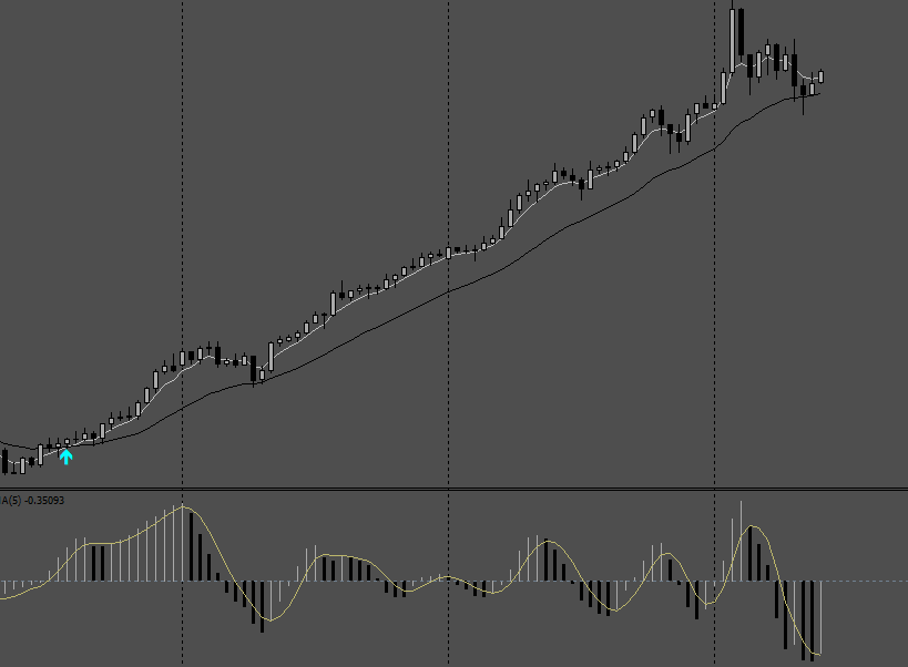 I wanted to know if we have the Accelerator Oscillator with a MA? I have been trying this out as a filter to confirm entries. It seems to work pretty well. If you are buying, you want to make sure the histo is above the MA and vice versa for a sell. With a couple of moving averages (5/21 EMAs) on the the chart, it can be a very useful filter. And if alerts were on the histo passing the MA, we would have great entry signals.