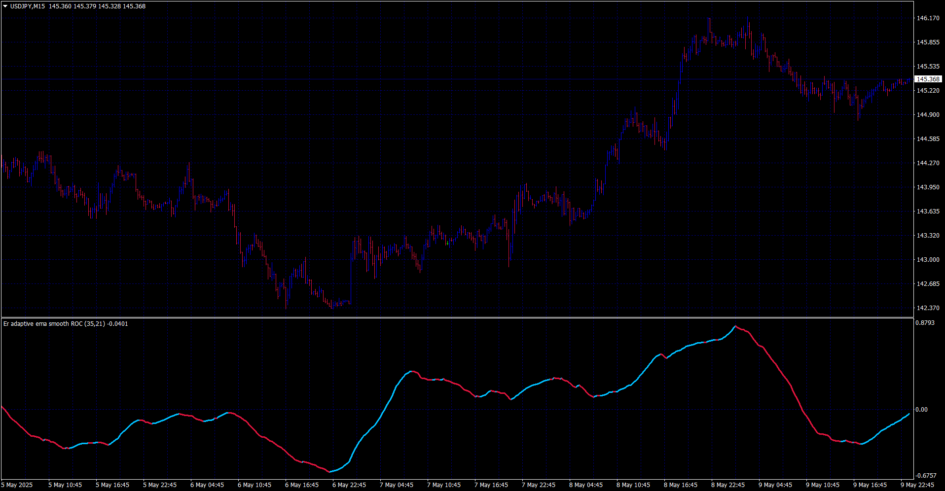 Smoothed RoC (Rate Of Change) EMA using Kaufman Efficiency Ratio