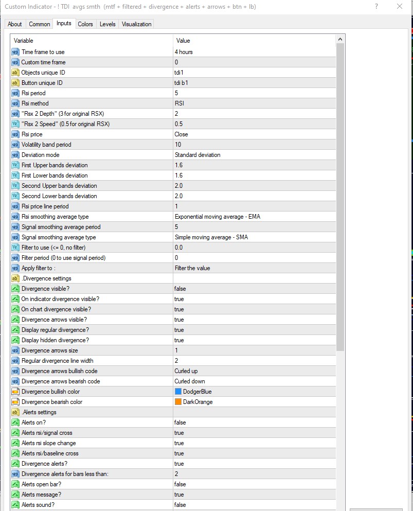 Double Volatility Bands TDI with Divergences + Color Change on Slope + Filtering + Arrows + Alerts & On/Off Button
