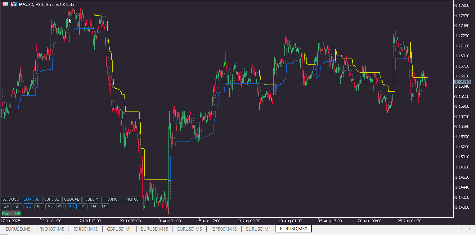 With these settings, ProfitMax on M5 and M30 generally agrees in terms of trend direction. The M30 timeframe is used mainly for visual reference, to demonstrate the consistency of the trend structure, rather than as a mandatory analytical component.