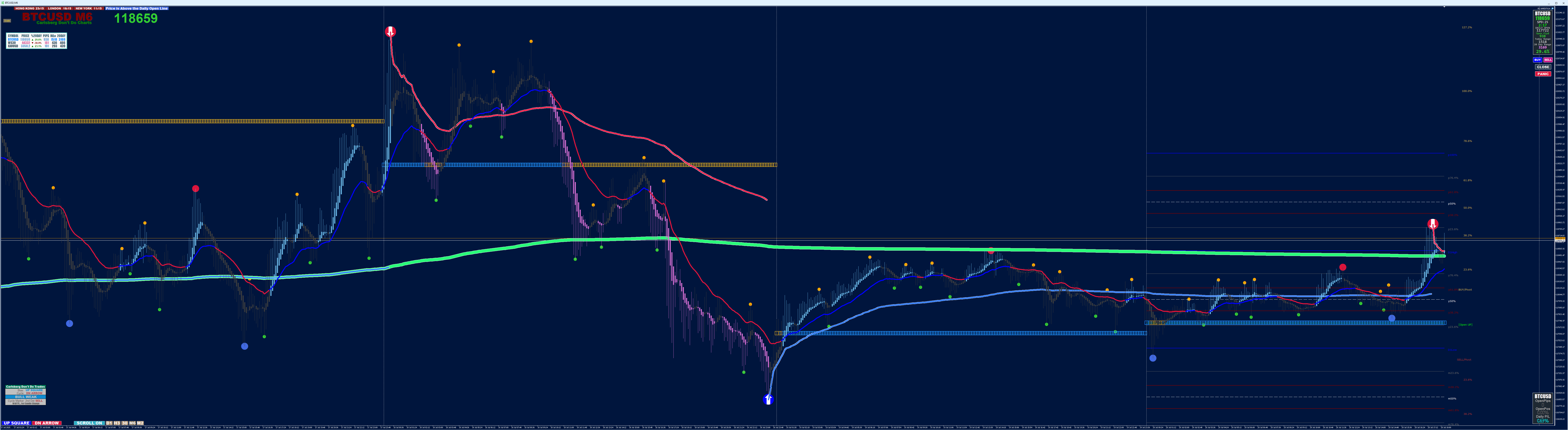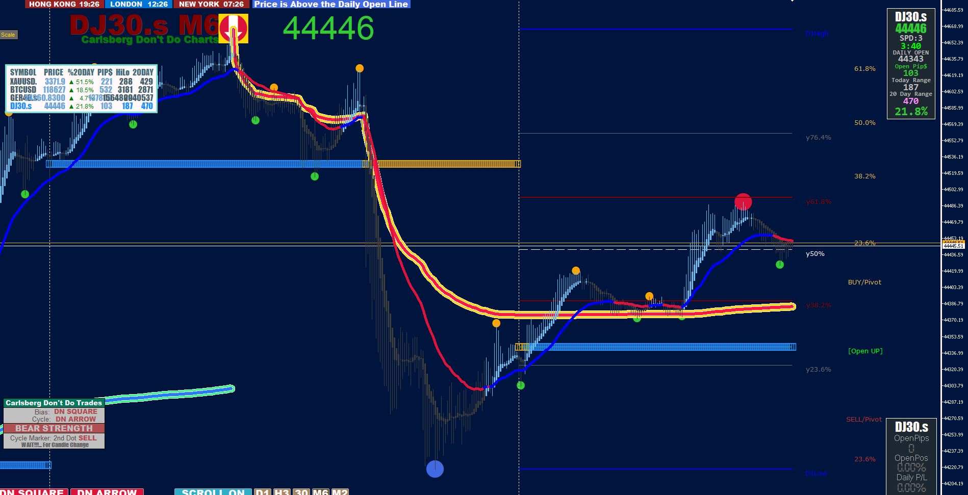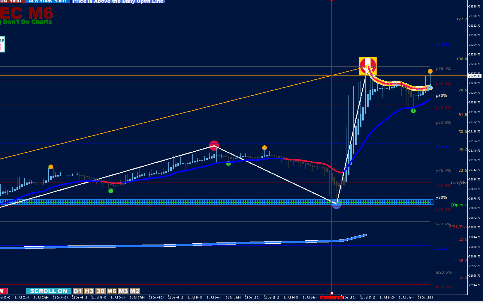 With v10.04 on AUS200, the directional indication displays correctly on M5, but on M6, the directional indication for today's chart is reversed ie. no short candles indicated below the Vwap line, but long candles are displayed towards the Vwap.
