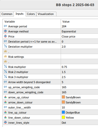 BB stops is using Bollinger bands as a criteria for determining if the trend is changing as well as determining the trend direction. The usual way how it finds out the stop lines is by calculating a risk based on deviation. But, in many cases, one single proposed stop line is not enough.