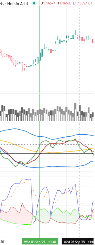 doolfrews wrote: Wed Aug 27, 2025 6:02 pm Thank you! Alternative Donchian + Dragon Mouth + Wilders ADX (with DX line). Complete system. EURUSD 1M this morning:
