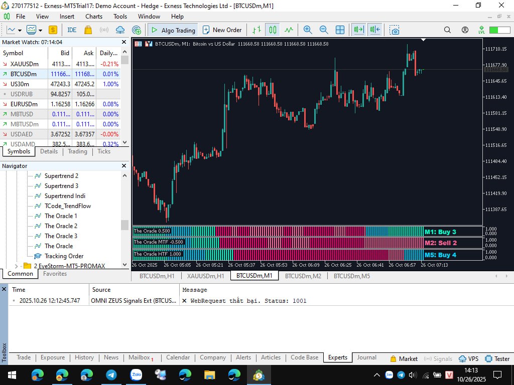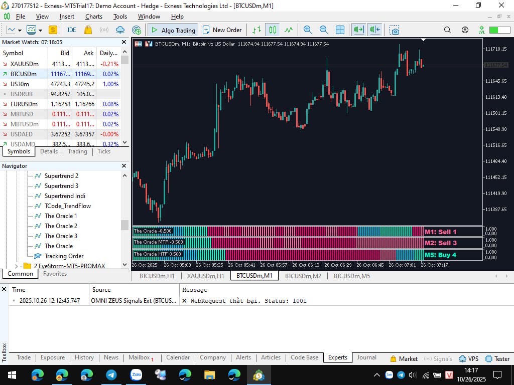 441Hi Cagliostro, It seems the Oracle indicator is repainting, as shown in the images I've attached below. I'm wondering if I have misunderstood the functionality of the Oracle indicator. I'm not sure if the Intelligent Market Adaptation feature causes repainting.