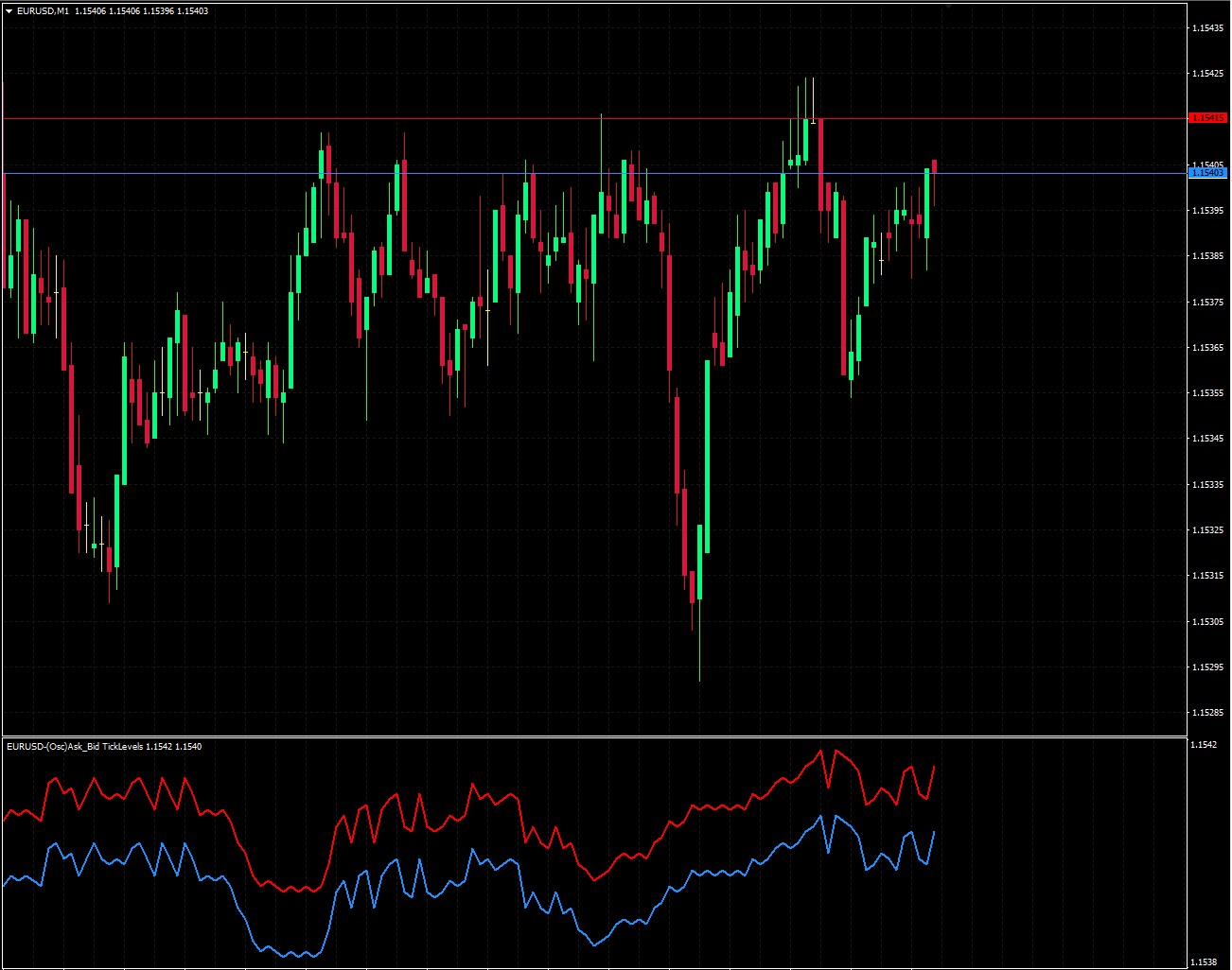 This provides an immediate overview of where aggressive buyers or sellers were most active in the recent tick history and prints a line across the screen for a reference point.
