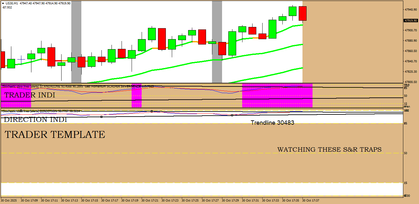 I've attached the specific indicators with specific settings and the template. I have not created written rules yet but you will seen see within a very short time how the support and resistance trendlines (traps) work. It is very time consuming so suggest trying it out on 15m or higher timeframes but will be very profitable. I have taken off the non critical indi's to simplify as they do not help with this system and tend to distract.