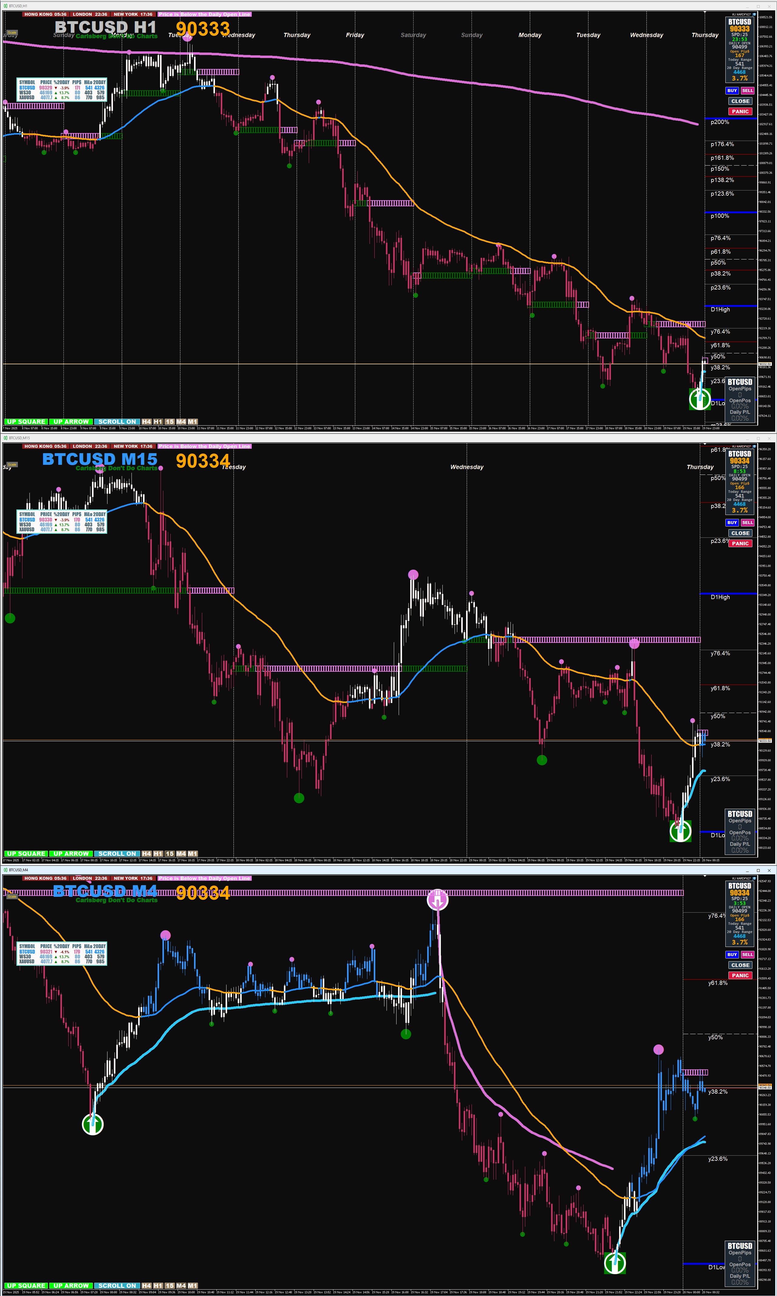 Or on MT5 2 oracle's 1H and 4 M ( u need custom ID so they don't overlap) semaphores from Xard and trade in direction of sema