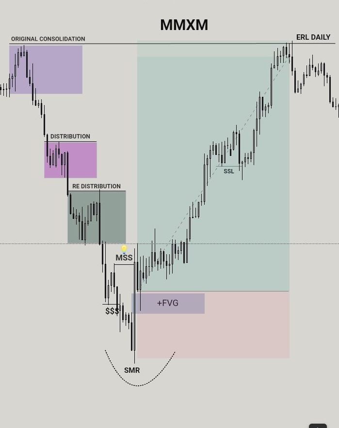 Tentative name: **ICT AMD MMXM CRT Fractal Model + RSI Signals**