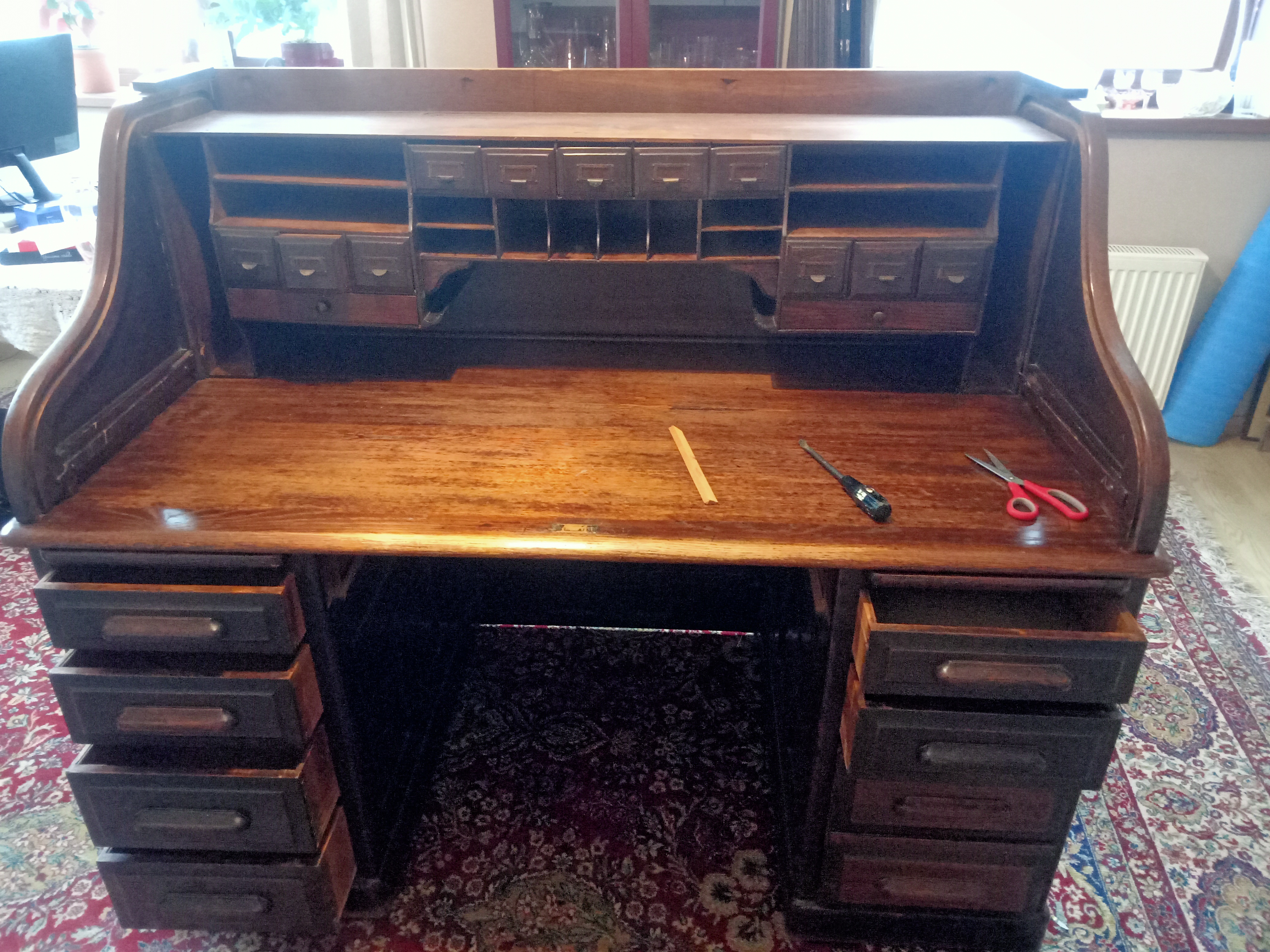76Me too B, its something that was handed down our generations. I am 72 currently and had it for around 30 years after father died. Its gonna need some specialist attention to the left top corner that will hold the roll top. Damaged slightly during international transit. Previously while in Cyprus, had a four monitor setup, including Bloomberg platform. Now i only require 2. You sit at this and your psyche gets down to biz. You know you are at work.