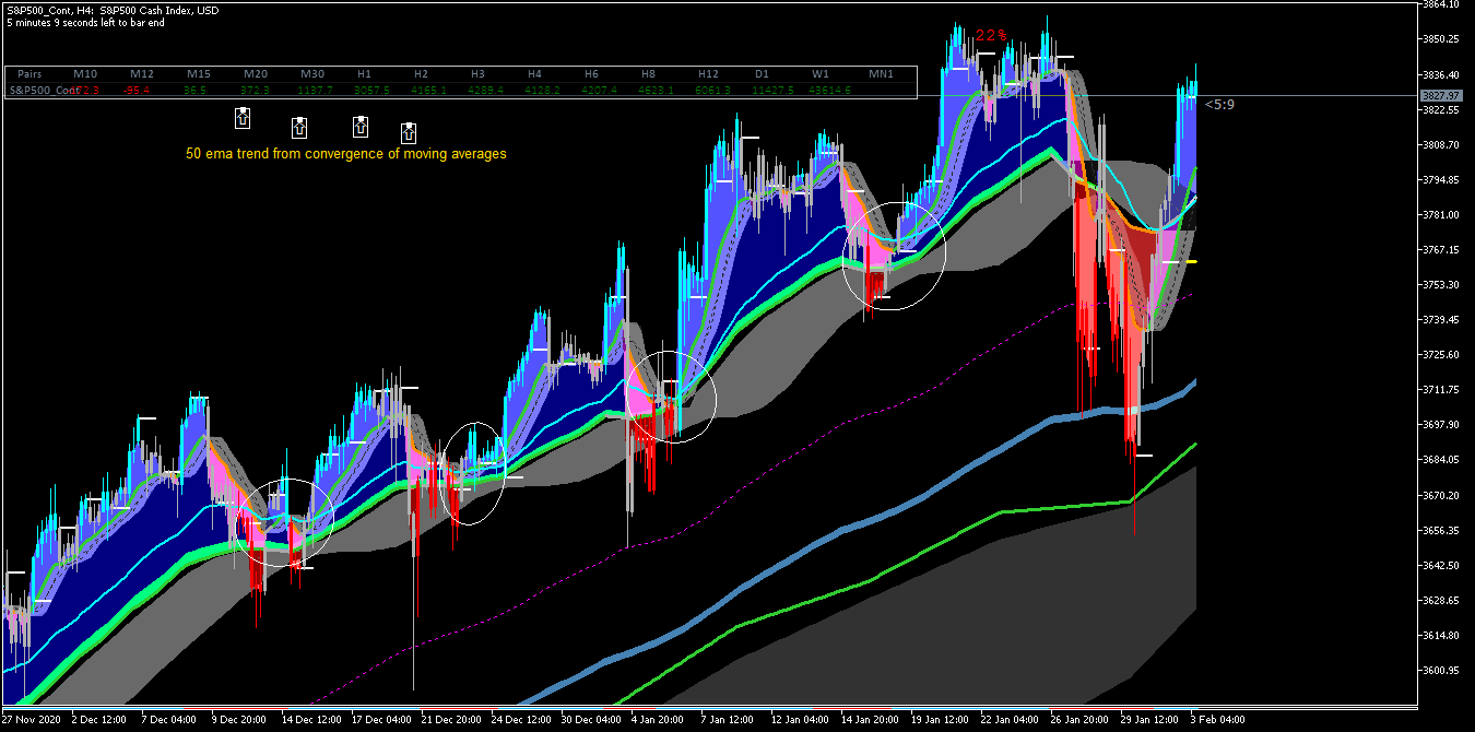 xard indicators makes it easy to see the things due to color coding what is the relation of moving averages in all timeframes to find convergence points of moving averages in all timeframes at a glance in single chart.